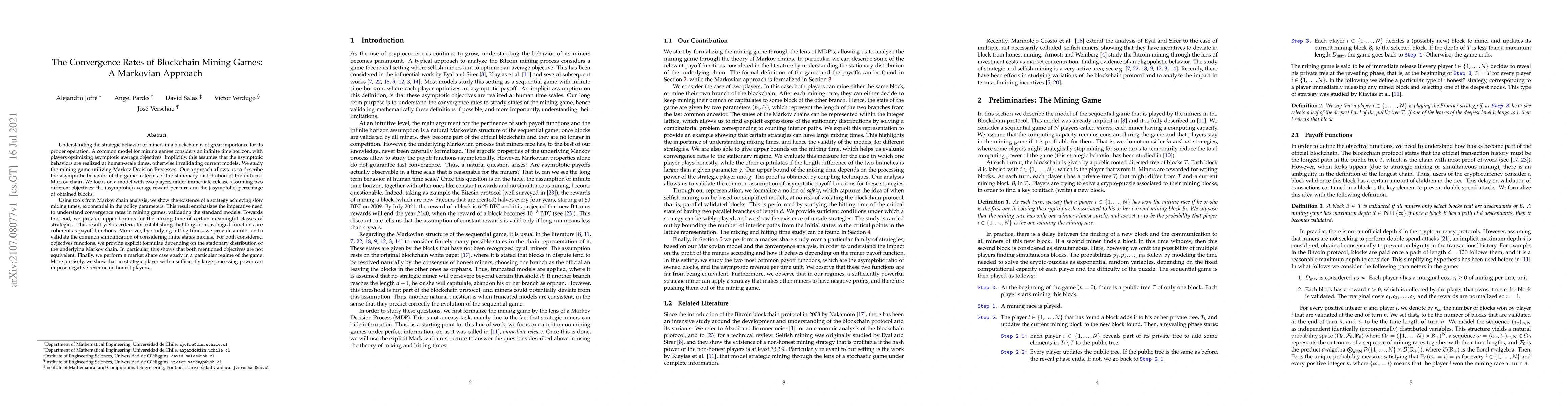 Understanding the strategic behavior of miners in a blockchain is of great importance for its proper operation. A common model for mining games considers an infinite time horizon, with players optimizing asymptotic average objectives. Implicitly, this assumes that the asymptotic behaviors are realized at human-scale times, otherwise invalidating current models. We study the mining game utilizing Markov Decision Processes. Our approach allows us to describe the asymptotic behavior of the game in terms of the stationary distribution of the induced Markov chain. We focus on a model with two players under immediate release, assuming two different objectives: the (asymptotic) average reward per turn and the (asymptotic) percentage of obtained blocks. Using tools from Markov chain analysis, we show the existence of a strategy achieving slow mixing times, exponential in the policy parameters. This result emphasizes the imperative need to understand convergence rates in mining games, validating the standard models. Towards this end, we provide upper bounds for the mixing time of certain meaningful classes of strategies. This result yields criteria for establishing that long-term averaged functions are coherent as payoff functions. Moreover, by studying hitting times, we provide a criterion to validate the common simplification of considering finite states models. For both considered objectives functions, we provide explicit formulae depending on the stationary distribution of the underlying Markov chain. In particular, this shows that both mentioned objectives are not equivalent. Finally, we perform a market share case study in a particular regime of the game. More precisely, we show that an strategic player with a sufficiently large processing power can impose negative revenue on honest players.