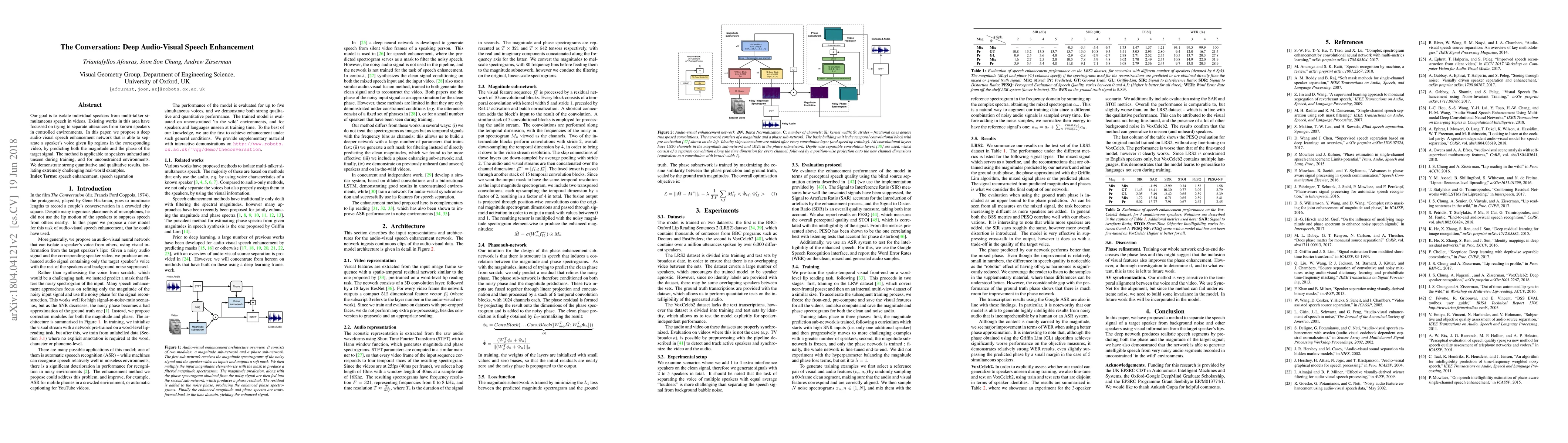 The method uses lip region prediction to separate speaker voice magnitude and phase, applicable to unseen speakers and unconstrained environments.