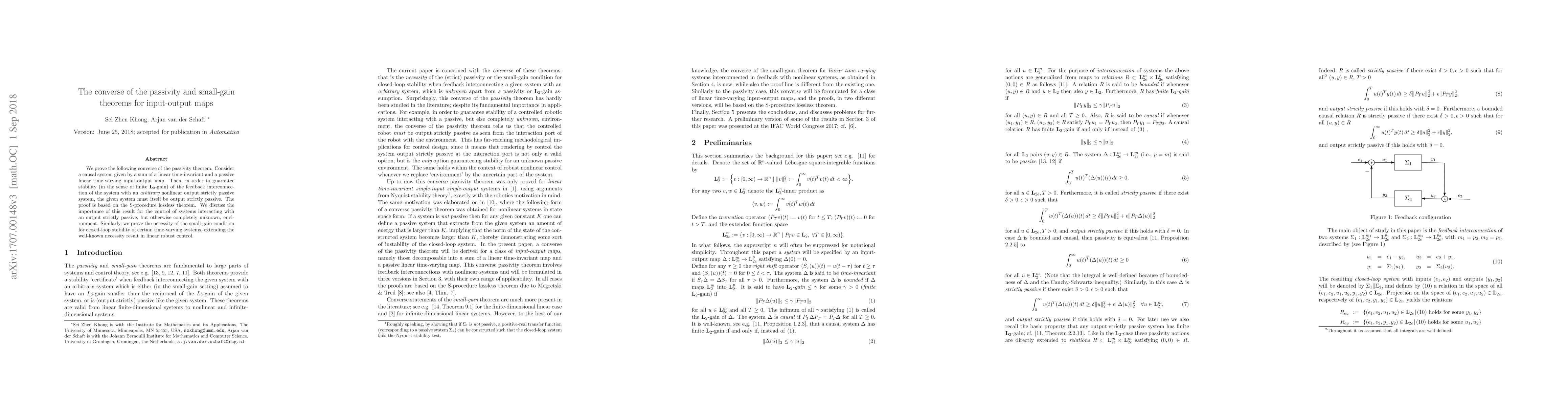 We prove the following converse of the passivity theorem. Consider a causal system given by a sum of a linear time-invariant and a passive linear time-varying input-output map. Then, in order to guarantee stability (in the sense of finite L2-gain) of the feedback interconnection of the system with an arbitrary nonlinear output strictly passive system, the given system must itself be output strictly passive. The proof is based on the S-procedure lossless theorem. We discuss the importance of this result for the control of systems interacting with an output strictly passive, but otherwise completely unknown, environment. Similarly, we prove the necessity of the small-gain condition for closed-loop stability of certain time-varying systems, extending the well-known necessity result in linear robust control.
