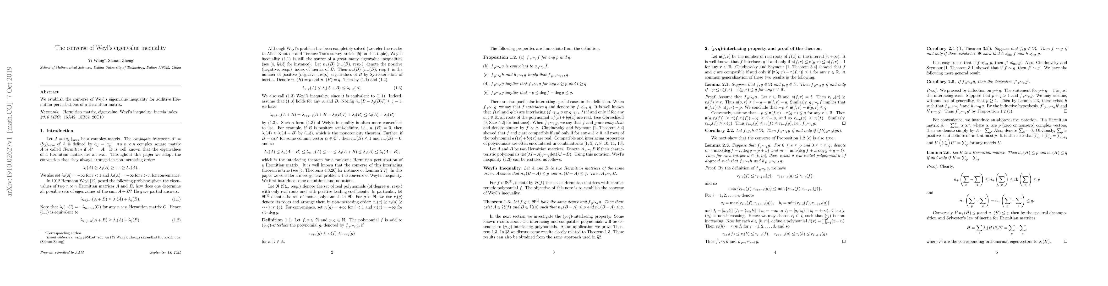 Summary: This paper proves the converse of Weyl's eigenvalue inequality, showing that if additive Hermitian perturbations of a Hermitian matrix satisfy a certain condition, then the eigenvalues will adhere to Weyl's inequality.