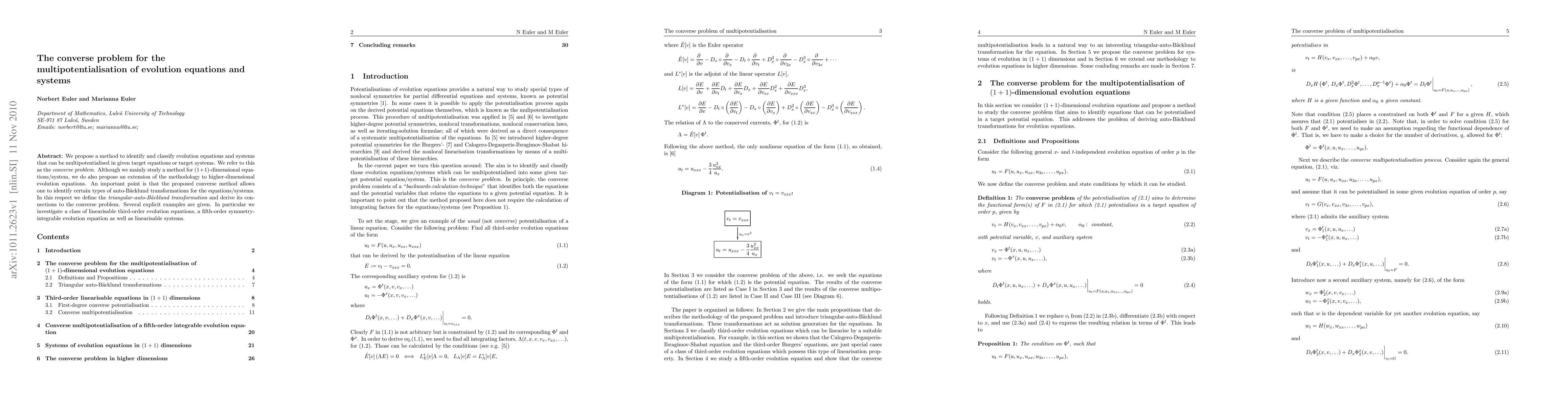 This paper proposes a method to identify evolution equations that can be multipotentialised into given target equations, addressing the converse problem. It introduces the concept of triangular-auto-Bäcklund transformations and extends the methodology to higher-dimensional systems, providing explicit examples for various types of equations.