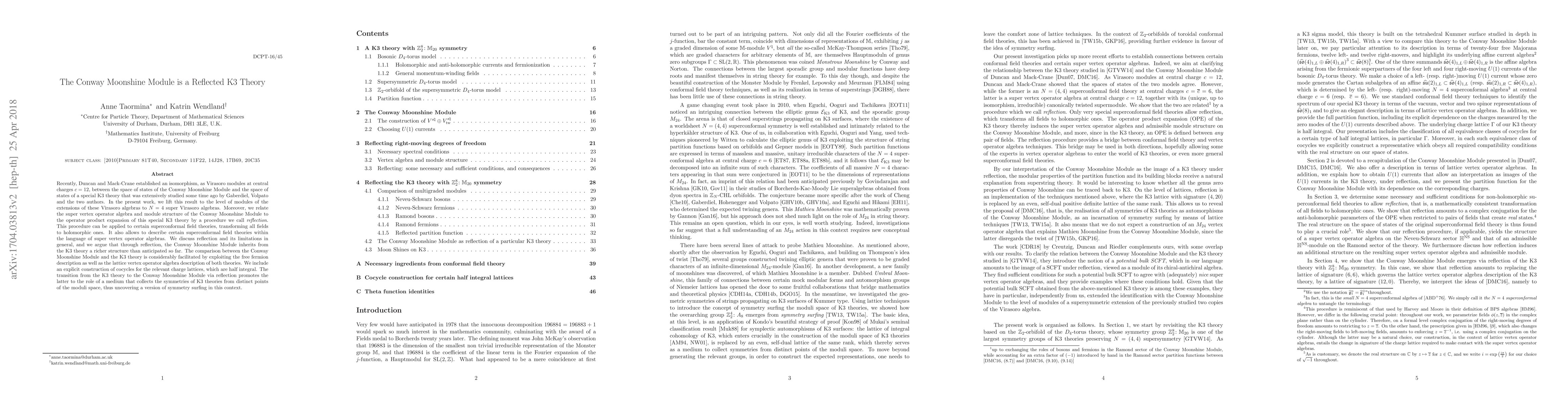 This paper establishes an isomorphism between the Conway Moonshine Module and a special K3 theory via an N=4 super Virasoro algebra extension, using a procedure called reflection. It reveals a richer structure in the Conway Moonshine Module through this comparison, facilitated by free fermion and lattice vertex operator algebra descriptions.