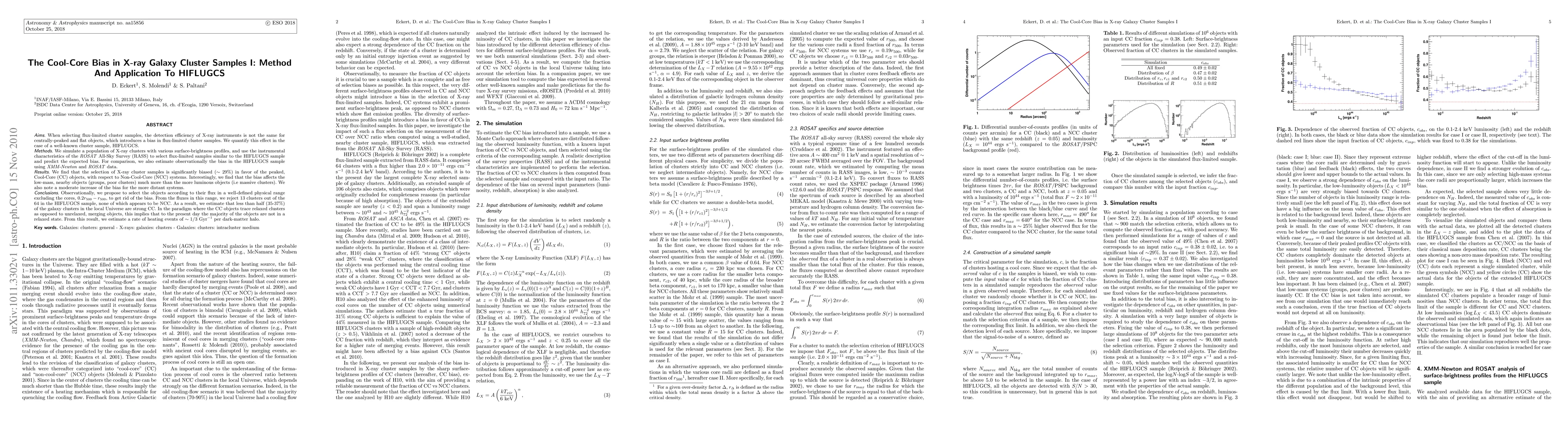 When selecting flux-limited cluster samples, the detection efficiency of X-ray instruments is not the same for centrally-peaked and flat objects, which introduces a bias in flux-limited cluster samples. We quantify this effect in the case of a well-known cluster sample, HIFLUGCS. We simulate a population of X-ray clusters with various surface-brightness profiles, and use the instrumental characteristics of the ROSAT All-Sky Survey (RASS) to select flux-limited samples similar to the HIFLUGCS sample and predict the expected bias. For comparison, we also estimate observationally the bias in the HIFLUGCS sample using XMM-Newton and ROSAT data. We find that the selection of X-ray cluster samples is significantly biased ($\sim29%$) in favor of the peaked, Cool-Core (CC) objects, with respect to Non-Cool-Core (NCC) systems. Interestingly, we find that the bias affects the low-mass, nearby objects (groups, poor clusters) much more than the more luminous objects (i.e massive clusters). We also note a moderate increase of the bias for the more distant systems. Observationally, we propose to select the objects according to their flux in a well-defined physical range excluding the cores, $0.2r_{500}-r_{500}$, to get rid of the bias. From the fluxes in this range, we reject 13 clusters out of the 64 in the HIFLUGCS sample, none of which appears to be NCC. As a result, we estimate that less than half (35-37%) of the galaxy clusters in the local Universe are strong CC. In the paradigm where the CC objects trace relaxed clusters as opposed to unrelaxed, merging objects, this implies that to the present day the majority of the objects are not in a relaxed state. From this result, we estimate a rate of heating events of $\sim1/3$ Gyr$^{-1}$ per dark-matter halo.