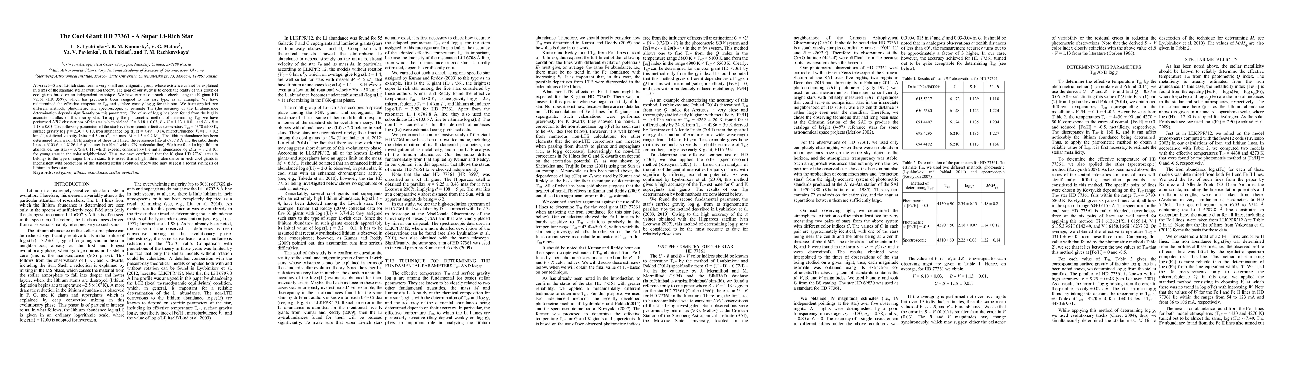 Super Li-rich stars form a very small and enigmatic group whose existence cannot be explained in terms of the standard stellar evolution theory. The goal of our study is to check the reality of this group of cool giants based on an independent technique. We have carried out such a check using the K giant HD 77361 (HR 3597), which has previously been assigned to this rare type, as an example. We have redetermined the effective temperature Teff and surface gravity log g for this star. We have applied two different methods, photometric and spectroscopic, to estimate Teff (the accuracy of the Li-abundance determination depends significantly on this parameter). The value of log g has been found from the highly accurate parallax of this nearby star. To apply the photometric method of determining Teff, we have performed UBV observations of the star, which yielded V = 6.18 +/- 0.03, B - V = 1.13 +/- 0.01, and U - B = 1.18+/-0.05. The following parameters of the star have been found: effective temperature Teff = 4370+/- 100 K, surface gravity log g = 2.30 +/- 0.10, iron abundance log e(Fe) = 7.49 +/- 0.14, microturbulence Vt = 1.1 +/- 0.2 km/s, rotational velocity V sin i = 4.5 km/s, and mass M = 1.3 +/- 0.2 Msun. The lithium abundance has been determined from a non-LTE analysis of three Li I lines: the resonance line at 6707.8 ?A and the subordinate lines at 6103.6 and 8126.4 ?A (the latter in a blend with a CN molecular line). We have found a high lithium abundance, log e(Li) = 3.75 +/- 0.11, which exceeds considerably the initial abundance log e(Li) = 3.2 +/- 0.1 for young stars in the solar neighborhood. Thus, we have confirmed that the K giant HD 77361 actually belongs to the type of super Li-rich stars.