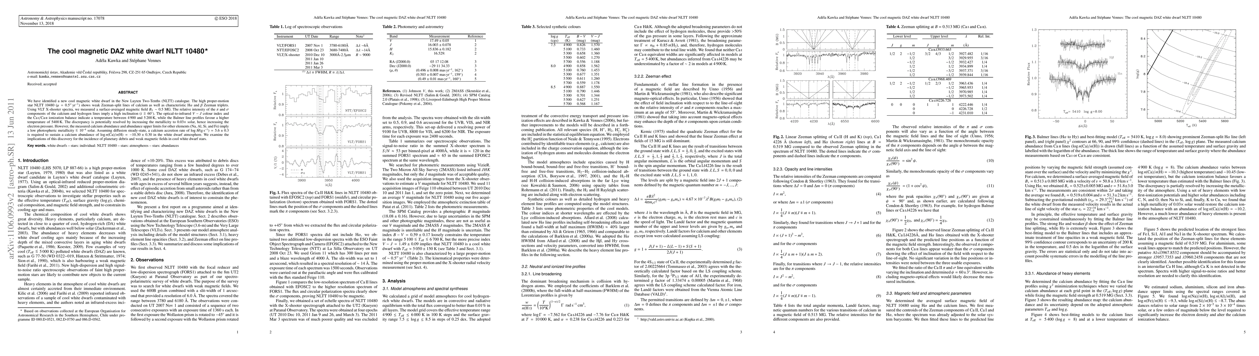 The study used VLT X-shooter spectra to measure the surface-averaged magnetic field (B_S ~ 0.5 MG) of NLTT 10480, a cool magnetic DAZ white dwarf. The researchers analyzed the Zeeman splitting in calcium, hydrogen lines, and applied models to determine atmospheric parameters.