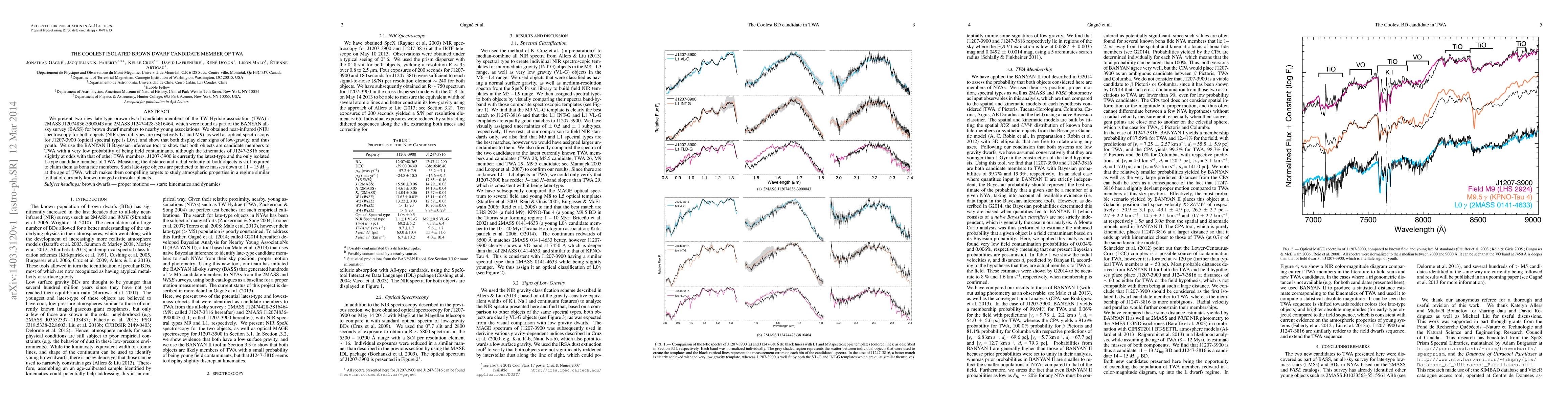 The research utilized the BANYAN all-sky survey (BASS) to identify brown dwarf candidate members of the TW Hydrae association (TWA). Near-infrared (NIR) and optical spectroscopy were obtained for two late-type candidates (2MASS J12074836-3900043 and 2MASS J12474428-3816464) to analyze their spectral features and low-gravity signatures indicative of youth.