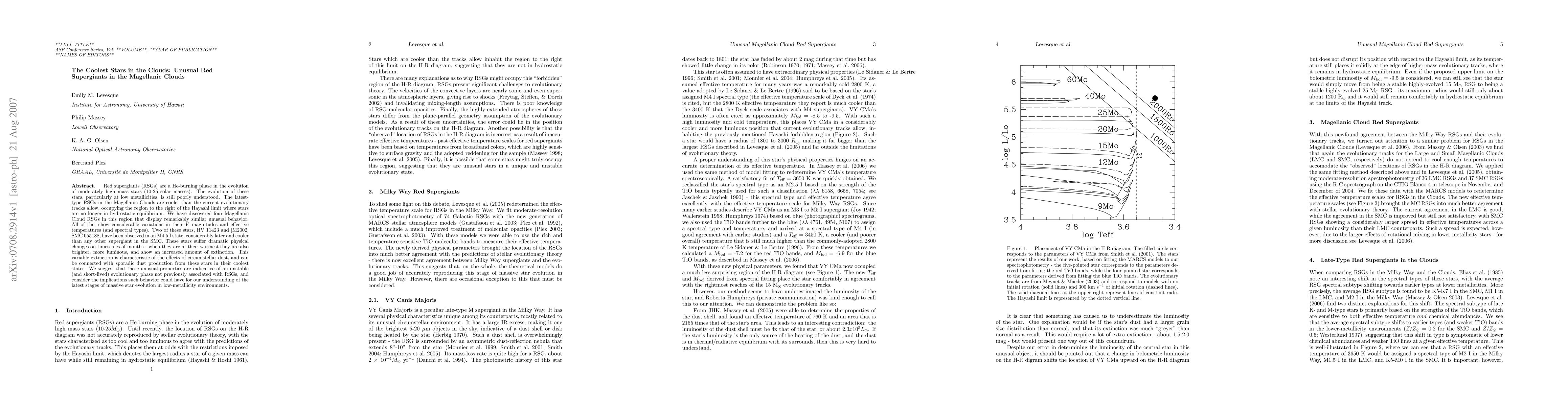 Red supergiants (RSGs) are a He-burning phase in the evolution of moderately high mass stars (10-25 solar masses). The evolution of these stars, particularly at low metallicities, is still poorly understood. The latest-type RSGs in the Magellanic Clouds are cooler than the current evolutionary tracks allow, occupying the region to the right of the Hayashi limit where stars are no longer in hydrodynamic equilibrium. We have discovered four Cloud RSGs in this region that display remarkably similar unusual behavior. All of them show considerable variations in their V magnitudes and effective temperatures (and spectral types). Two of these stars, HV 11423 and [M2002] SMC 055188, have been observed in an M4.5 I state, considerably later and cooler than any other supergiant in the SMC. These stars suffer dramatic physical changes on timescales of months - when they are at their warmest, they are also brighter, more luminous, and show an increased amount of extinction. This variable extinction is characteristic of the effects of circumstellar dust, and can be connected with sporadic dust production from these stars in their cooler states. We suggest that these unusual properties are indicative of an unstable (and short-lived) evolutionary phase not previously associated with RSGs, and consider the implications such behavior could have for our understanding of the latest stages of massive star evolution in low-metallicity environments.