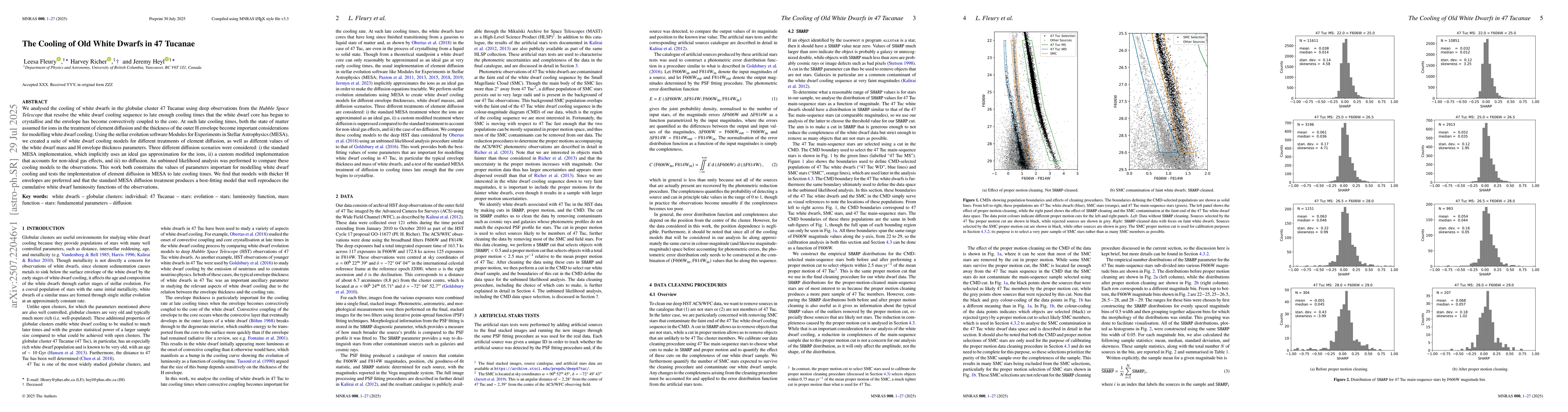 We analysed the cooling of white dwarfs in the globular cluster 47 Tucanae using deep observations from the Hubble Space Telescope that resolve the white dwarf cooling sequence to late enough cooling times that the white dwarf core has begun to crystallise and the envelope has become convectively coupled to the core. At such late cooling times, both the state of matter assumed for ions in the treatment of element diffusion and the thickness of the outer H envelope become important considerations for modelling white dwarf cooling. Using the stellar evolution software Modules for Experiments in Stellar Astrophysics (MESA), we created a suite of white dwarf cooling models for different treatments of element diffusion, as well as different values of the white dwarf mass and H envelope thickness parameters. Three different diffusion scenarios were considered: i) the standard MESA implementation, which implicitly uses an ideal gas approximation for the ions, ii) a custom modified implementation that accounts for non-ideal gas effects, and iii) no diffusion. An unbinned likelihood analysis was performed to compare these cooling models to the observations. This work both constrains the values of parameters important for modelling white dwarf cooling and tests the implementation of element diffusion in MESA to late cooling times. We find that models with thicker H envelopes are preferred and that the standard MESA diffusion treatment produces a best-fitting model that well reproduces the cumulative white dwarf luminosity functions of the observations.