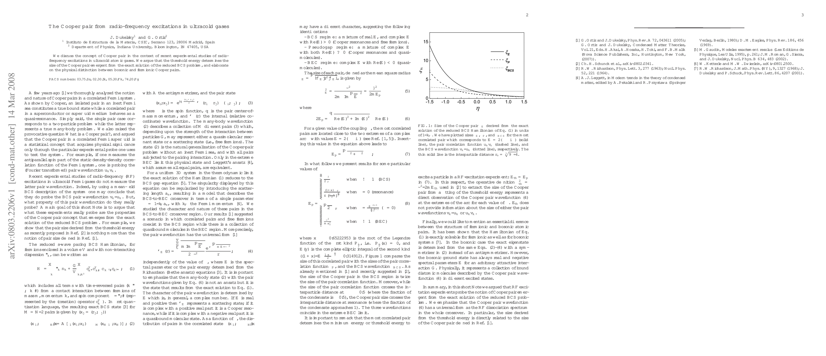 Summary: This paper explores the formation of Cooper pairs in ultracold atomic gases through radio-frequency excitations, arguing that threshold energy dictates the size of the Cooper pair and distinguishing between bosonic and fermionic Cooper pairs based on their physical properties.