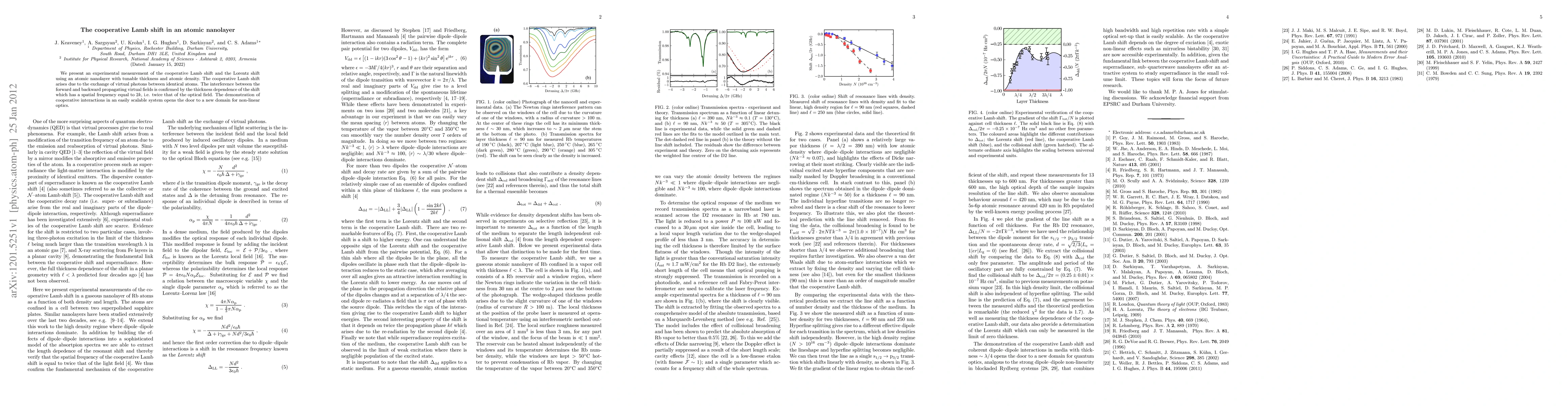 The paper presents an experimental method to measure the cooperative Lamb shift and Lorentz shift in an atomic nanolayer, demonstrating cooperative interactions in a scalable system.