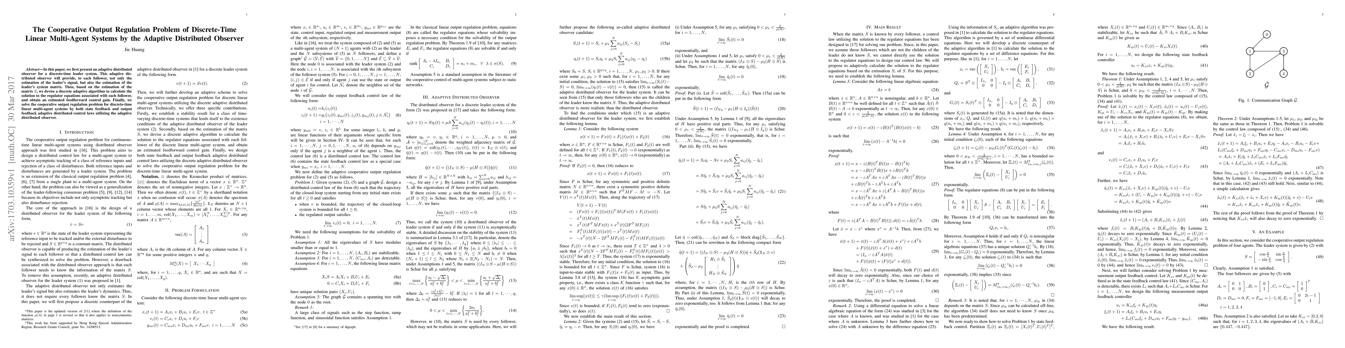 This paper proposes an adaptive distributed observer for discrete-time leader-following multi-agent systems to estimate both the leader's signal and system matrix. It then uses these estimates to develop an adaptive algorithm for cooperative output regulation through state and output feedback control laws.