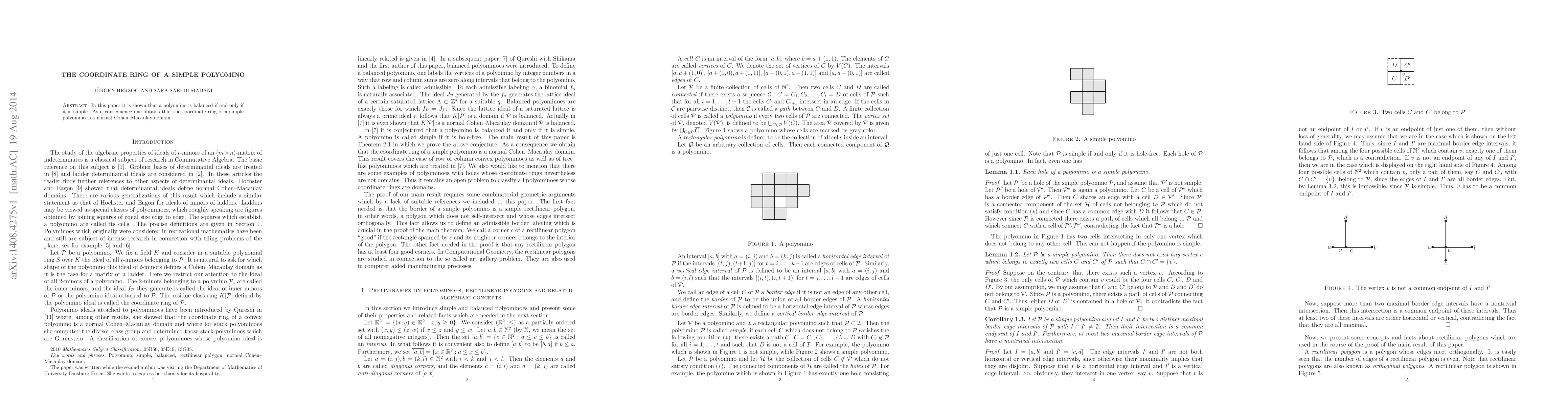 In this paper it is shown that a polyomino is balanced if and only if it is simple. As a consequence one obtains that the coordinate ring of a simple polyomino is a normal Cohen-Macaulay domain.
