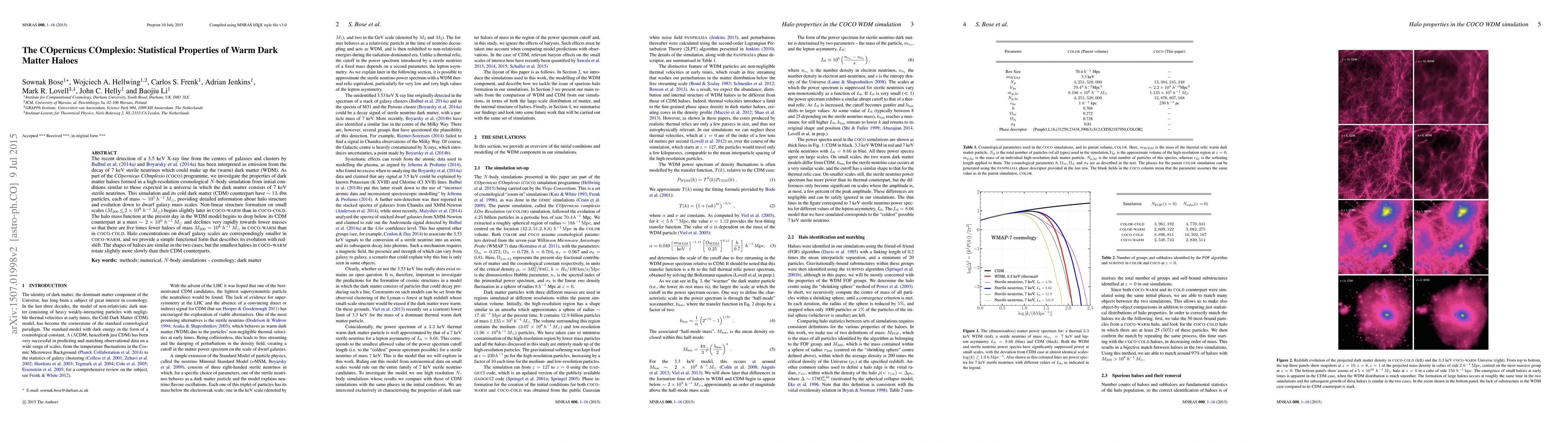 The paper presents detailed analysis from high-resolution N-body simulations, comparing WDM and CDM halo properties, including mass functions, concentrations, shapes, and spins.