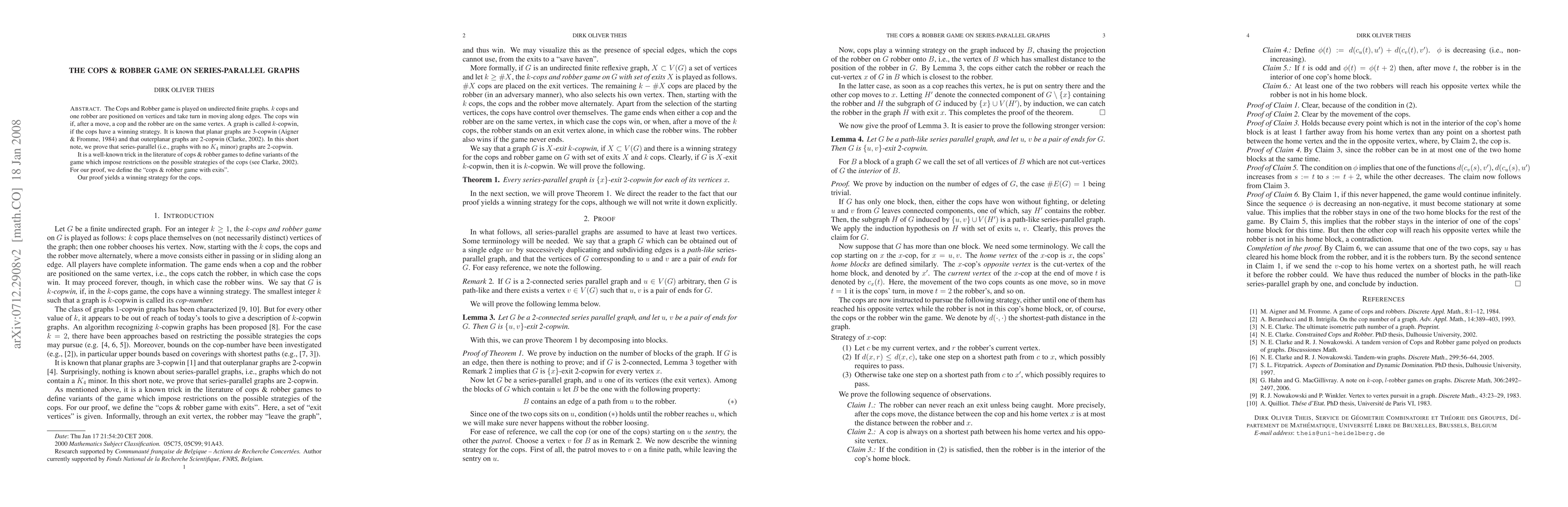 The introduction of the 'cops & robber game with exits' variant and the proof that series-parallel graphs are 2-copwin.