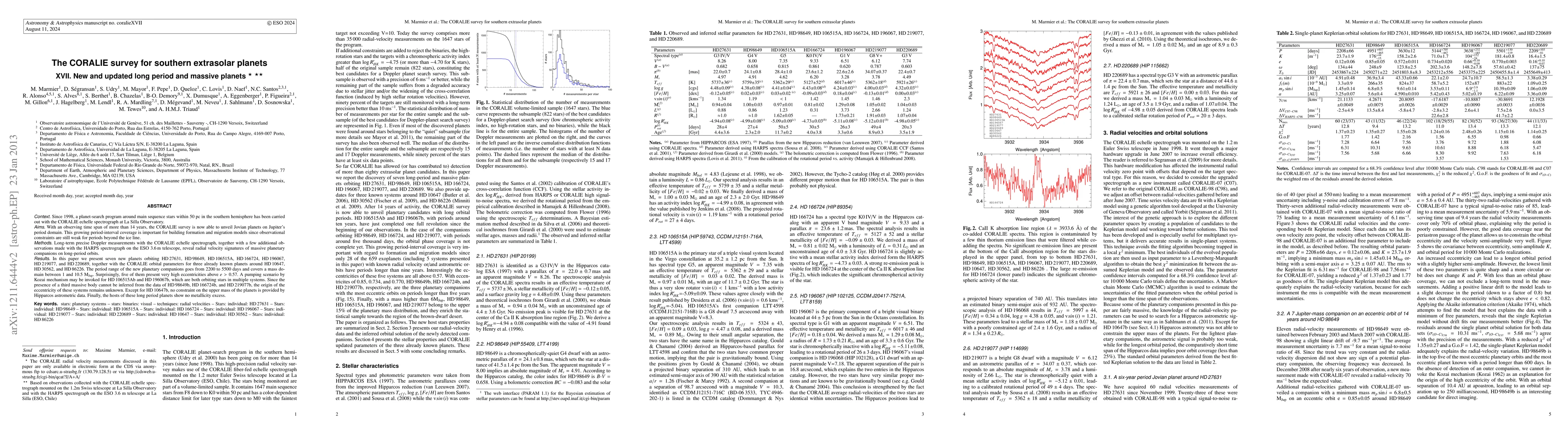 The CORALIE survey has identified seven new long-period, massive exoplanets and updated parameters for three previously known ones, spanning periods from 2200 to 5500 days and masses between 1 and 10.5 Jupiter masses, with some exhibiting high eccentricities possibly due to Kozai mechanism in multiple star systems.