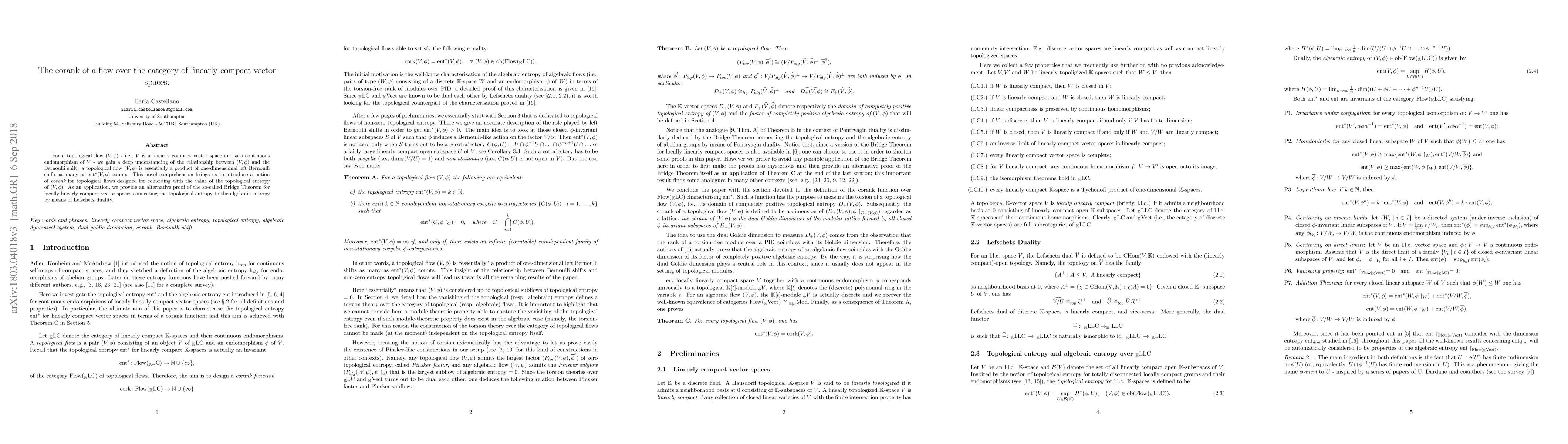 This paper explores the corank of topological flows over linearly compact vector spaces, revealing that such flows are essentially products of one-dimensional left Bernoulli shifts. It introduces a corank notion aligned with the topological entropy and provides an alternative proof of the Bridge Theorem using Lefschetz duality.
