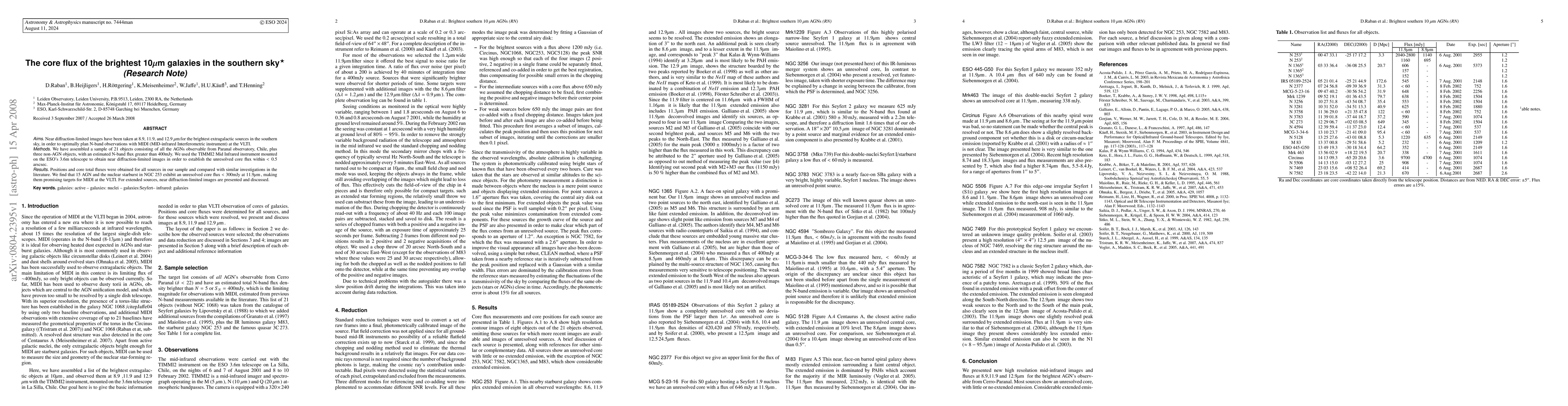 Aims. Near diffraction-limited images have been taken at 8.9, 11.9, and 12.9 micron for the brightest extragalactic sources in the southern sky, in order to optimally plan N-band observations with MIDI (MID-infrared Interferometric instrument) at the VLTI. Methods. We have assembled a sample of 21 objects consisting of all the AGNs observable from Paranal observatory, Chile, plus three non-AGN objects, with an estimated N-band flux greater than 400mJy. We used the TIMMI2 Mid Infrared instrument mounted on the ESO's 3.6m telescope to obtain near diffraction-limited images in order to establish the unresolved core flux within < 0.5 arscsec. Results. Positions and core total fluxes were obtained for all sources in our sample and compared with similar investigations in the literature. We find that 15 AGN and the nuclear starburst in NGC 253 exhibit an unresolved core flux < 300mJy at 11.9 micron, making them promising targets for MIDI at the VLTI. For extended sources, near diffraction-limited images are presented and discussed.