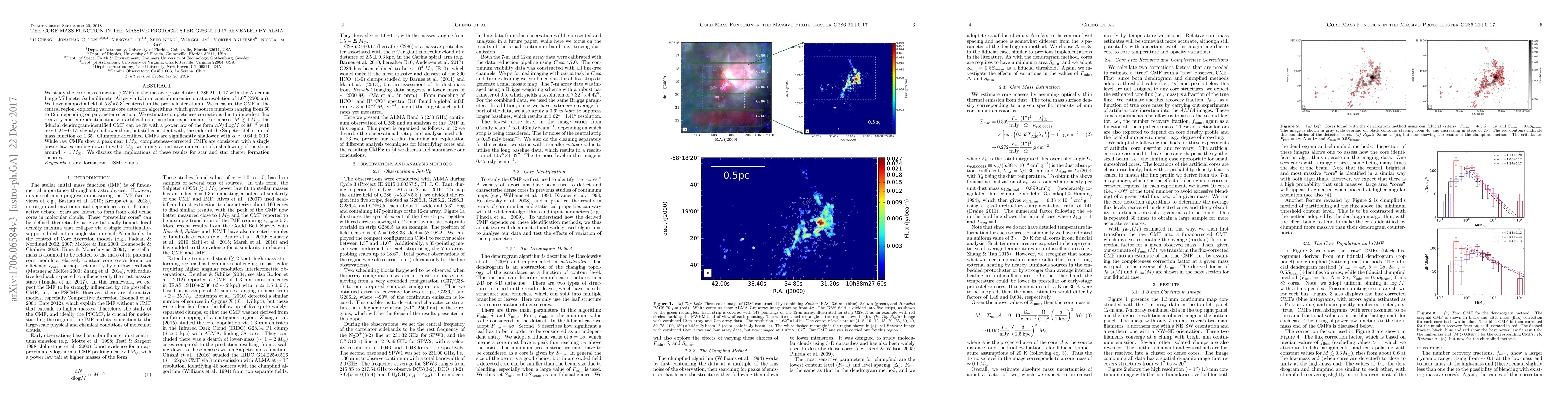 We study the core mass function (CMF) of the massive protocluster G286.21+0.17 with the Atacama Large Millimeter/submillimeter Array via 1.3~mm continuum emission at a resolution of 1.0\arcsec\ (2500~au). We have mapped a field of 5.3\arcmin$\times$5.3\arcmin\ centered on the protocluster clump. We measure the CMF in the central region, exploring various core detection algorithms, which give source numbers ranging from 60 to 125, depending on parameter selection. We estimate completeness corrections due to imperfect flux recovery and core identification via artificial core insertion experiments. For masses $M\gtrsim1\:M_\odot$, the fiducial dendrogram-identified CMF can be fit with a power law of the form ${\rm{d}}N/{\rm{d}}{\rm{log}}M\propto{M}^{-\alpha}$ with $\alpha \simeq1.24\pm0.17$, slightly shallower than, but still consistent with, the index of the Salpeter stellar initial mass function of 1.35. Clumpfind-identified CMFs are significantly shallower with $\alpha\simeq0.64\pm0.13$. While raw CMFs show a peak near $1\:M_\odot$, completeness-corrected CMFs are consistent with a single power law extending down to $\sim 0.5\:M_\odot$, with only a tentative indication of a shallowing of the slope around $\sim1\:M_\odot$. We discuss the implications of these results for star and star cluster formation theories.