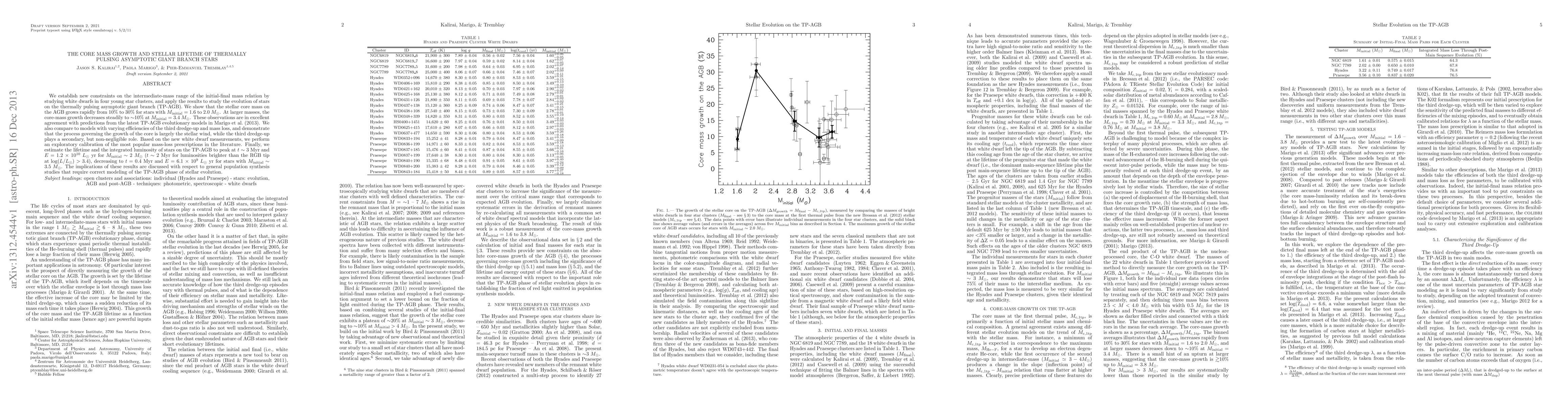 We establish new constraints on the intermediate-mass range of the initial-final mass relation by studying white dwarfs in four young star clusters, and apply the results to study the evolution of stars on the thermally pulsing asymptotic giant branch (TP-AGB). We show that the stellar core mass on the AGB grows rapidly from 10% to 30% for stars with $M_{\rm initial}$ = 1.6 to 2.0 $M_\odot$. At larger masses, the core-mass growth decreases steadily to $\sim$10% at $M_{\rm initial}$ = 3.4 $M_\odot$. These observations are in excellent agreement with predictions from the latest TP-AGB evolutionary models in Marigo et al. (2013). We also compare to models with varying efficiencies of the third dredge-up and mass loss, and demonstrate that the process governing the growth of the core is largely the stellar wind, while the third dredge-up plays a secondary, but non-negligible role. Based on the new white dwarf measurements, we perform an exploratory calibration of the most popular mass-loss prescriptions in the literature. Finally, we estimate the lifetime and the integrated luminosity of stars on the TP-AGB to peak at $t$ $\sim$ 3 Myr and $E$ = 1.2 $\times$ 10$^{10}$ $L_\odot$ yr for $M_{\rm initial}$ $\sim$ 2 $M_\odot$ ($t$ $\sim$ 2 Myr for luminosities brighter than the RGB tip at $\log(L/L_{\odot})$ $>$ 3.4), decreasing to $t$ = 0.4 Myr and $E$ = 6.1 $\times$ 10$^{9}$ $L_\odot$ yr for stars with $M_{\rm initial}$ $\sim$ 3.5 $M_\odot$. The implications of these results are discussed with respect to general population synthesis studies that require correct modeling of the TP-AGB phase of stellar evolution.
