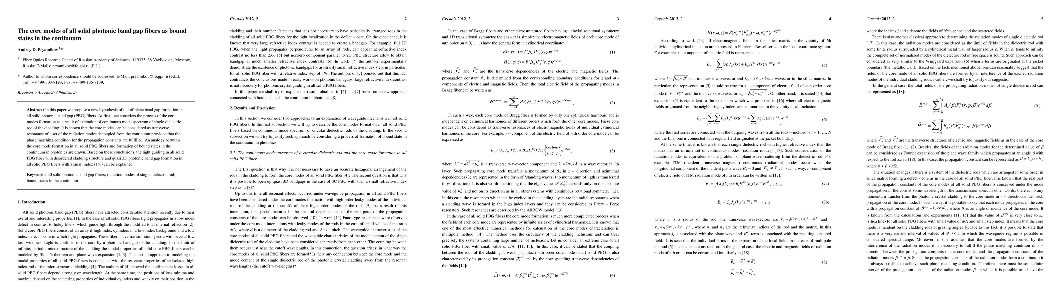 This paper proposes a new hypothesis for the formation of out-of-plane band gaps in all solid photonic band gap fibers, suggesting that core modes arise as transverse resonances of decoupled radiation modes fulfilling phase matching conditions. It draws an analogy between core mode formation and bound states in the continuum, explaining light guiding in disordered cladding structures and quasi 3D photonic band gap formation.