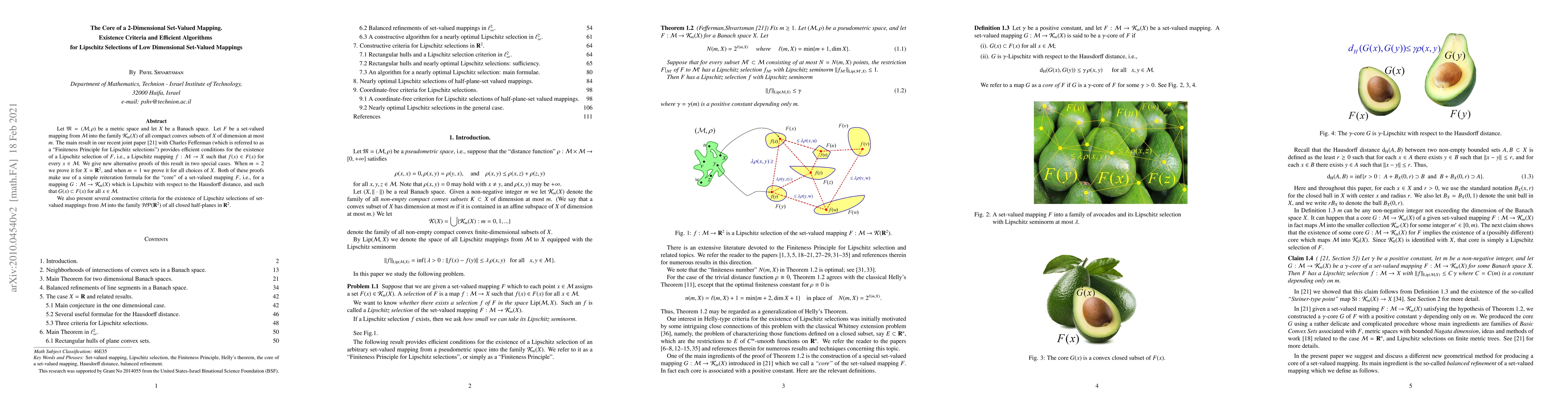 Let ${\mathfrak M}=({\mathcal M},\rho)$ be a metric space and let $X$ be a Banach space. Let $F$ be a set-valued mapping from ${\mathcal M}$ into the family ${\mathcal K}_m(X)$ of all compact convex subsets of $X$ of dimension at most $m$. The main result in our recent joint paper with Charles Fefferman (which is referred to as a "Finiteness Principle for Lipschitz selections") provides efficient conditions for the existence of a Lipschitz selection of $F$, i.e., a Lipschitz mapping $f:{\mathcal M}\to X$ such that $f(x)\in F(x)$ for every $x\in{\mathcal M}$. We give new alternative proofs of this result in two special cases. When $m=2$ we prove it for $X={\bf R}^{2}$, and when $m=1$ we prove it for all choices of $X$. Both of these proofs make use of a simple reiteration formula for the "core" of a set-valued mapping $F$, i.e., for a mapping $G:{\mathcal M}\to{\mathcal K}_m(X)$ which is Lipschitz with respect to the Hausdorff distance, and such that $G(x)\subset F(x)$ for all $x\in{\mathcal M}$. We also present several constructive criteria for the existence of Lipschitz selections of set-valued mappings from ${\mathcal M}$ into the family of all closed half-planes in ${\bf R}^{2}$.