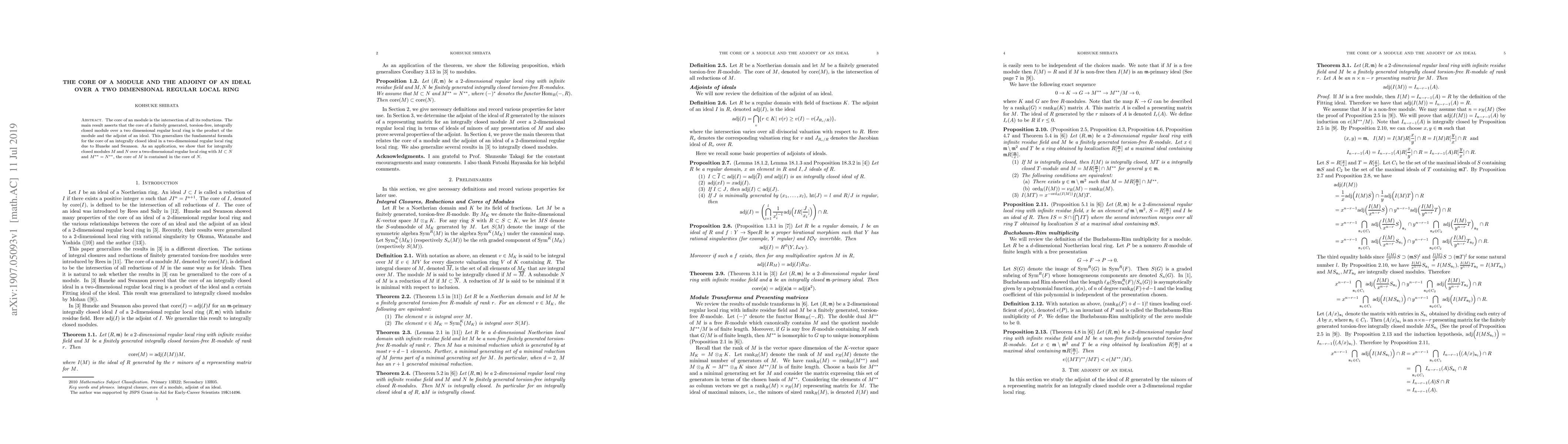 A two-dimensional regular local ring module's core is shown to be the product of the module and its adjoint ideal, generalizing a previous result for integrally closed ideals.