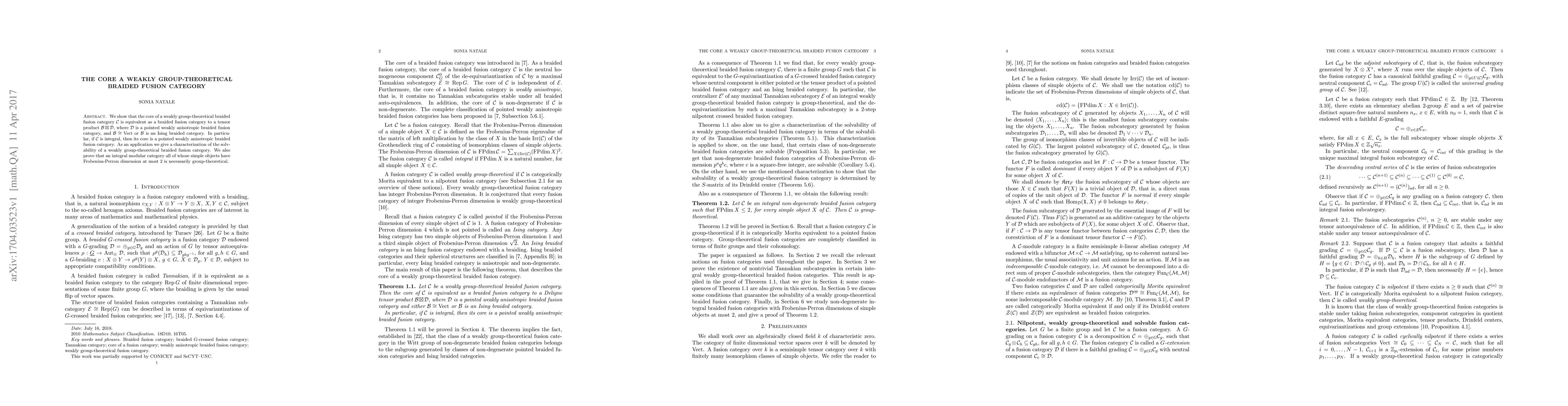 We show that the core of a weakly group-theoretical braided fusion category $\C$ is equivalent as a braided fusion category to a tensor product $\B \boxtimes \D$, where $\D$ is a pointed weakly anisotropic braided fusion category, and $\B \cong \vect$ or $\B$ is an Ising braided category. In particular, if $\C$ is integral, then its core is a pointed weakly anisotropic braided fusion category. As an application we give a characterization of the solvability of a weakly group-theoretical braided fusion category. We also prove that an integral modular category all of whose simple objects have Frobenius-Perron dimension at most 2 is necessarily group-theoretical.