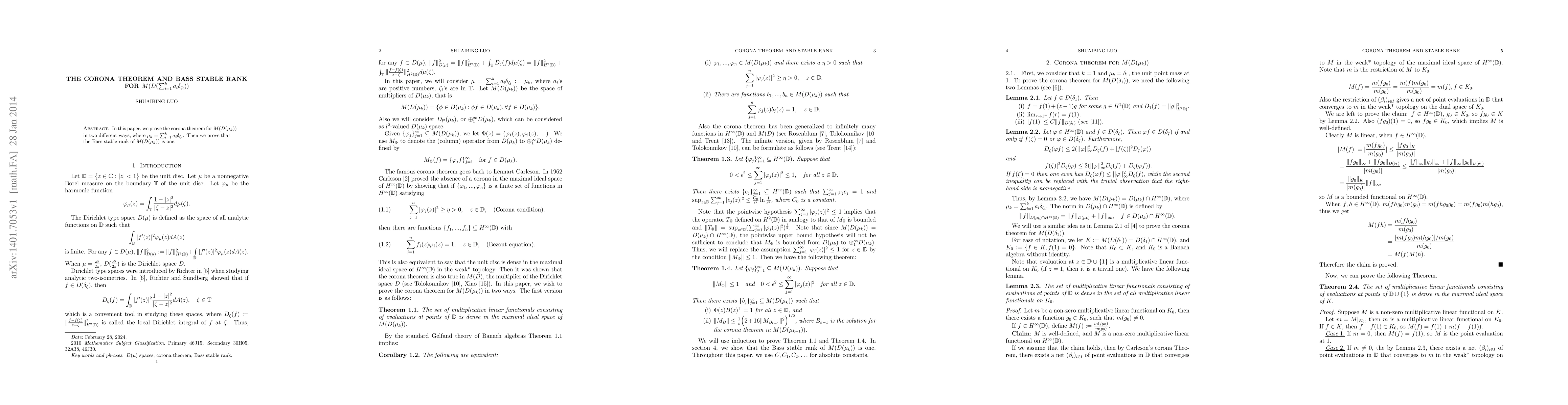 In this paper, we prove the corona theorem for $M(D(\mu_k))$ in two different ways, where $\mu_k = \sum_{i=1}^k a_i \delta_{\zeta_i}$. Then we prove that the Bass stable rank of $M(D(\mu_k))$ is one.