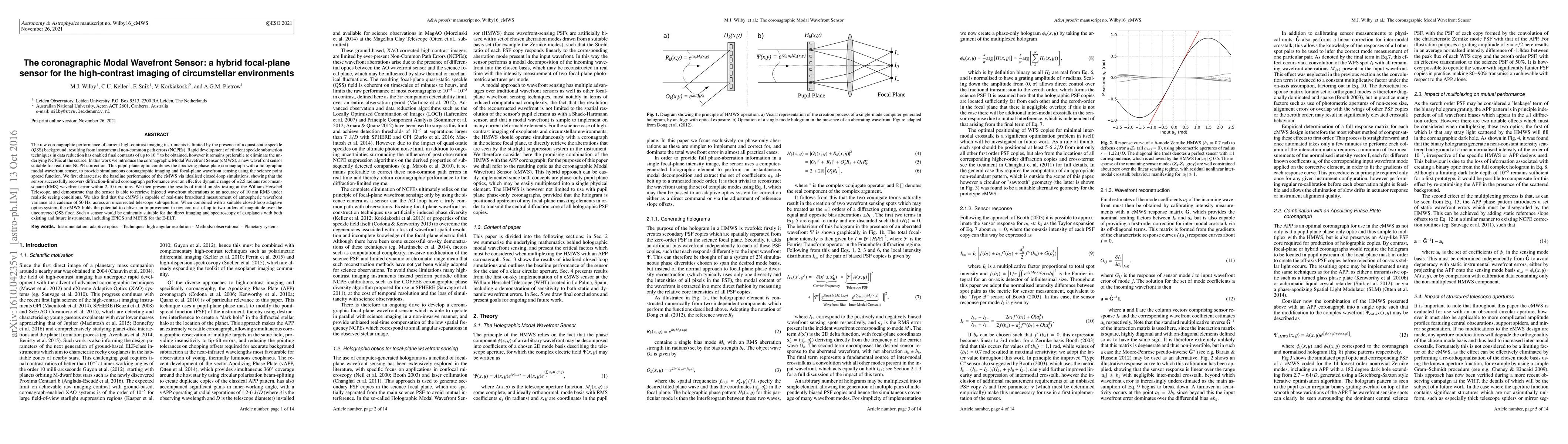 The coronagraphic Modal Wavefront Sensor (cMWS) combines a coronagraph with a holographic sensor to correct non-common path errors in high-contrast imaging, achieving diffraction-limited performance and real-time wavefront variance measurement. Initial on-sky testing demonstrates its ability to retrieve wavefront aberrations accurately, promising significant improvements in exoplanet imaging contrast.