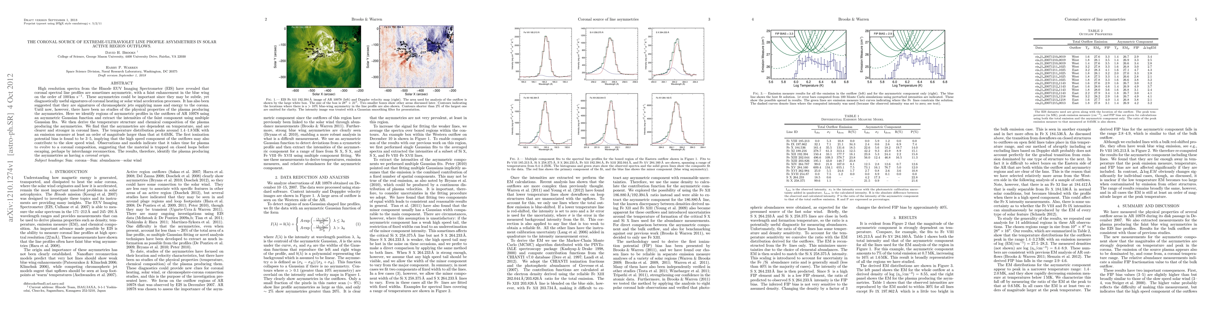 High resolution spectra from the Hinode EUV Imaging Spectrometer (EIS) have revealed that coronal spectral line profiles are sometimes asymmetric, with a faint enhancement in the blue wing on the order of 100 km/s. These asymmetries could be important since they may be subtle, yet diagnostically useful signatures of coronal heating or solar wind acceleration processes. It has also been suggested that they are signatures of chromospheric jets supplying mass and energy to the corona. Until now, however, there have been no studies of the physical properties of the plasma producing the asymmetries. Here we identify regions of asymmetric profiles in the outflows of AR 10978 using an asymmetric Gaussian function and extract the intensities of the faint component using multiple Gaussian fits. We then derive the temperature structure and chemical composition of the plasma producing the asymmetries. We find that the asymmetries are dependent on temperature, and are clearer and stronger in coronal lines. The temperature distribution peaks around 1.4-1.8 MK with an emission measure at least an order of magnitude larger than that at 0.6 MK. The first ionization potential bias is found to be 3-5, implying that the high speed component of the outflows may also contribute to the slow speed wind. Observations and models indicate that it takes time for plasma to evolve to a coronal composition, suggesting that the material is trapped on closed loops before escaping, perhaps by interchange reconnection. The results, therefore, identify the plasma producing the asymmetries as having a coronal origin.