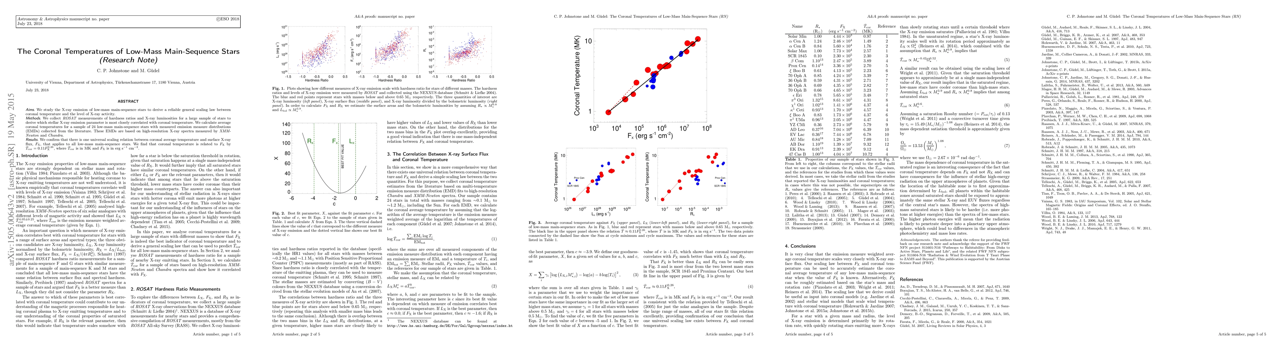 This study establishes a universal scaling law between coronal temperatures and surface X-ray flux for low-mass main-sequence stars, finding Tcor=0.11 Fx^0.26, derived from ROSAT, XMM-Newton, and Chandra data.