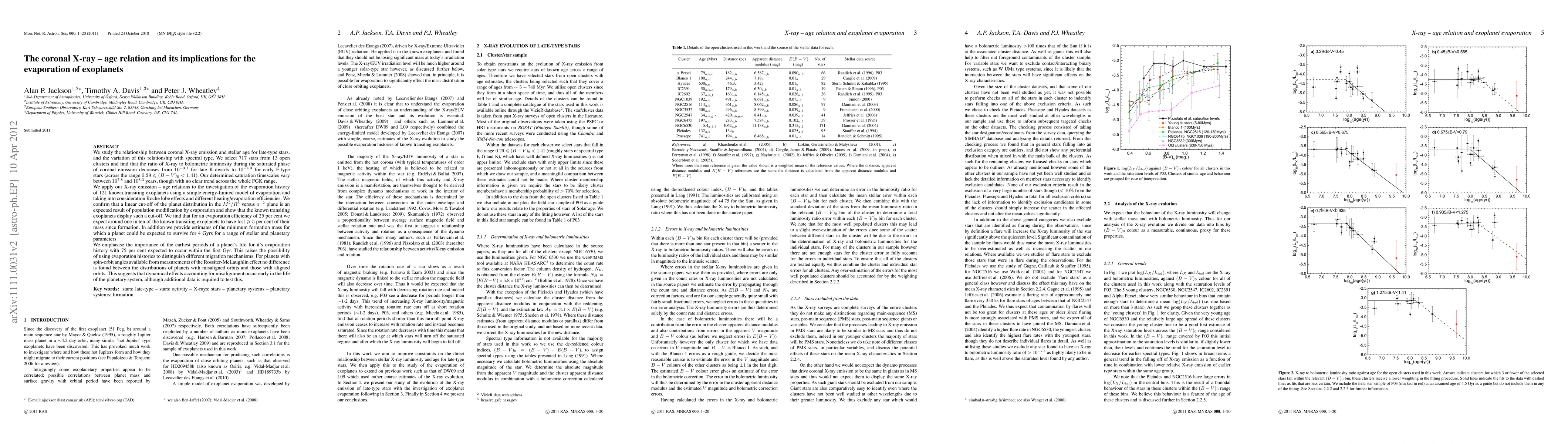 This paper investigates the correlation between coronal X-ray emission and stellar age in late-type stars, finding a decrease in X-ray to bolometric luminosity ratio from late K to early F stars. It applies these findings to model exoplanet evaporation, confirming a linear cut-off in the M^2/R^3 versus a^-2 plane due to evaporation and suggesting that 1 in 10 known transiting exoplanets may have lost over 5% of their mass.