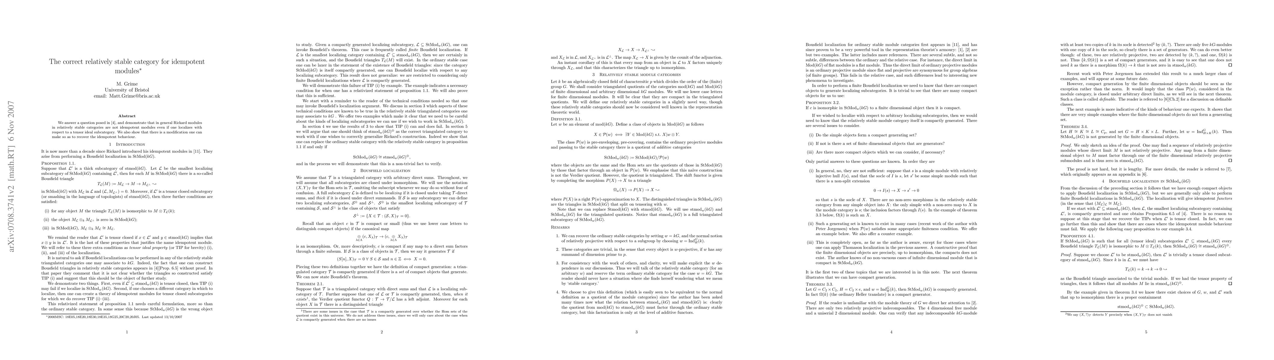We answer a question posed by Carlson, Peng, and Wheeler, and demonstrate that in general Rickard modules in relatively stable categories are not idempotent modules even if one localizes with respect to a tensor ideal subcategory. We also show that there is a modification one can make so as to recover the idempotent behaviour.