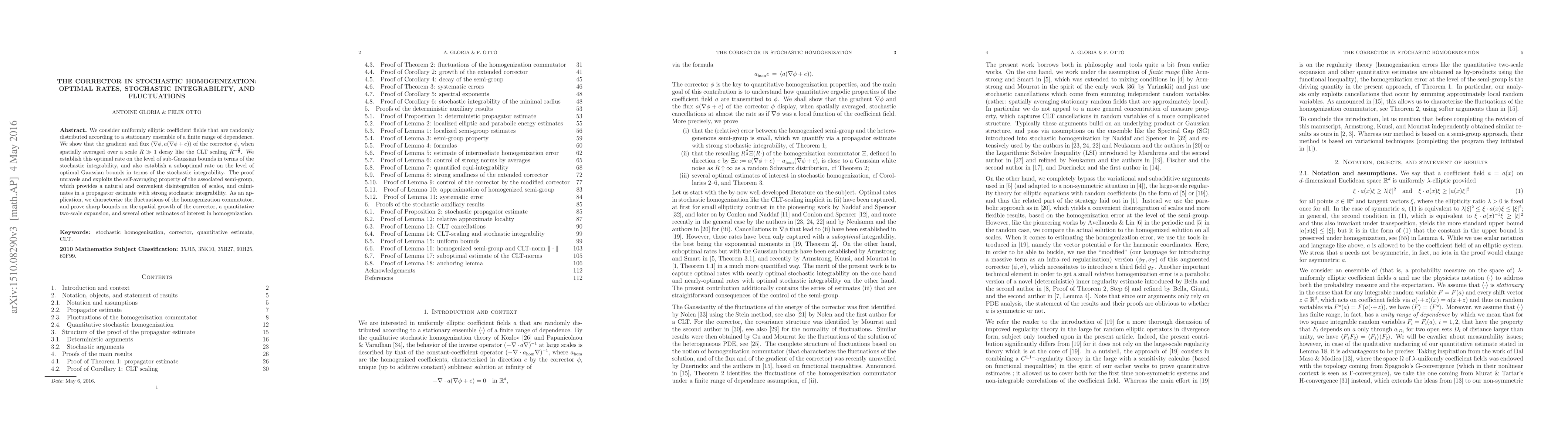 This paper investigates uniformly elliptic coefficient fields with random distributions, demonstrating optimal decay rates for the gradient and flux of the corrector at large scales, and establishing bounds on fluctuations and spatial growth. The analysis leverages stochastic integrability and self-averaging properties to achieve these results.
