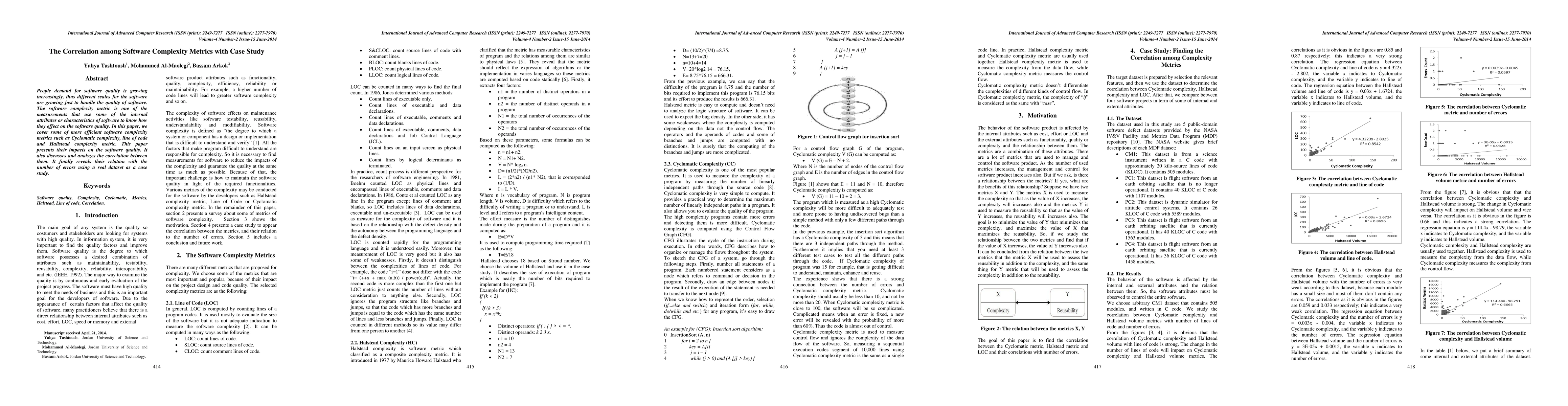 This paper examines the correlation among software complexity metrics such as Cyclomatic complexity, line of code, and Hallstead complexity metric in relation to software quality and error rates using a real dataset.