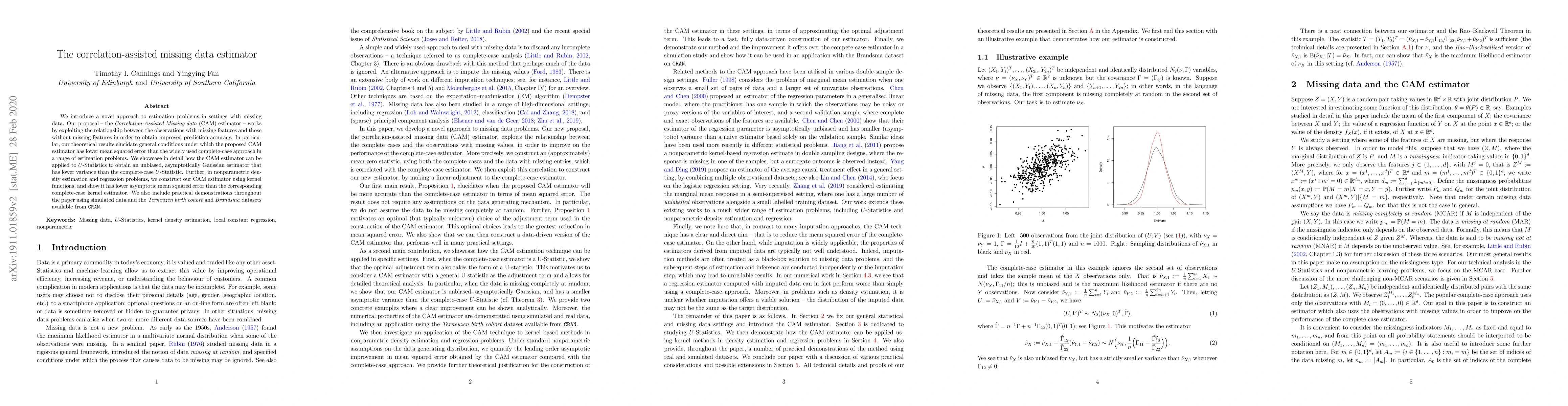 The Correlation-Assisted Missing data (CAM) estimator leverages relationships between complete and incomplete observations to improve prediction accuracy, demonstrating lower mean squared error compared to the complete-case approach across various estimation problems. Practical applications and simulations show its effectiveness in $U$-Statistics, density estimation, and regression.