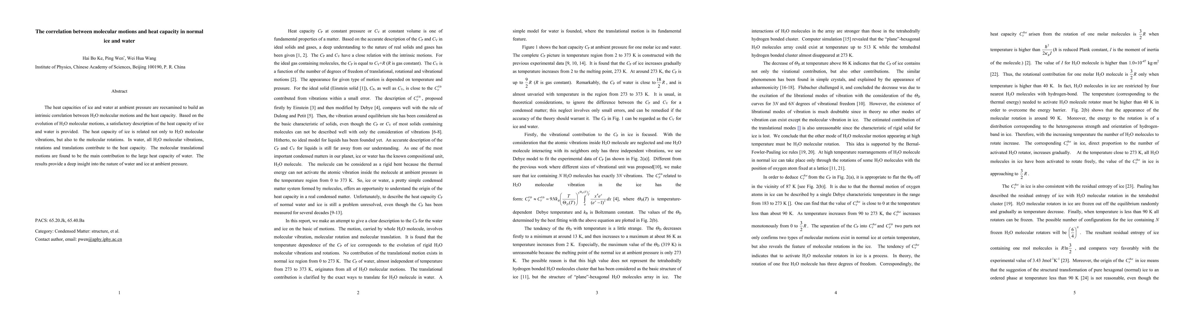 This study correlates molecular motions in ice and water to their respective heat capacities, revealing that ice's heat capacity is influenced by molecular vibrations and rotations, while water's is primarily driven by translational molecular motions. The findings offer profound insights into the thermodynamic properties of water and ice.
