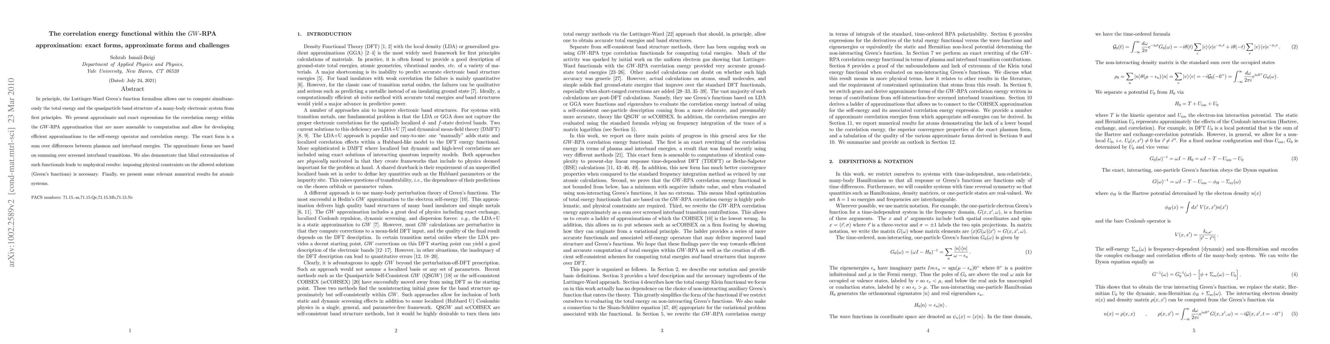 Researchers developed approximate and exact expressions for correlation energy within GW-RPA approximation, enabling efficient approximations to self-energy operator and correlation energy, with implications for computational efficiency and accuracy in electronic systems.