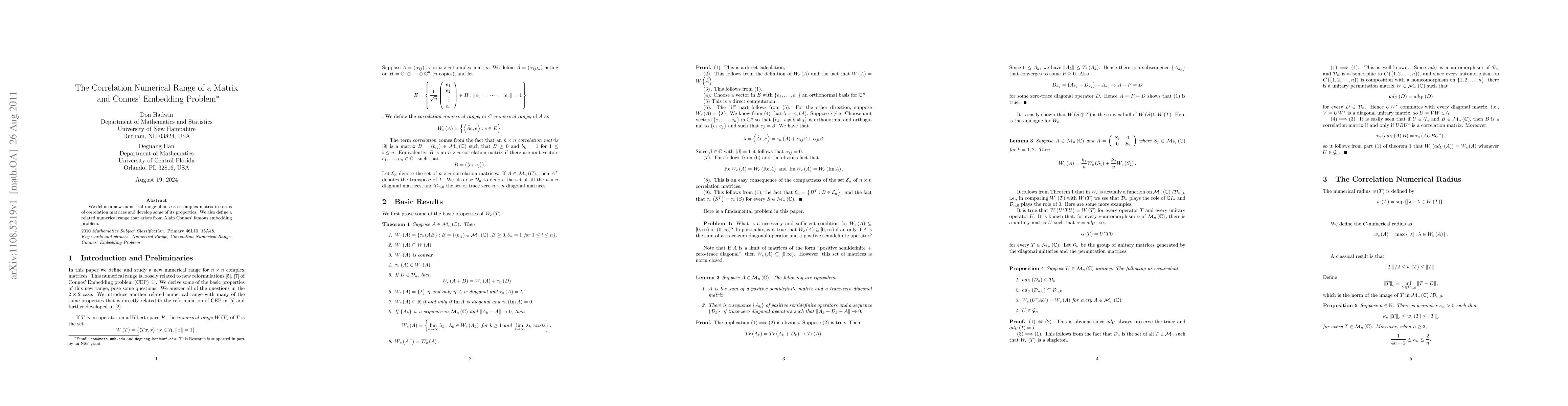 We define a new numerical range of an n\timesn complex matrix in terms of correlation matrices and develop some of its properties. We also define a related numerical range that arises from Alain Connes' famous embedding problem.