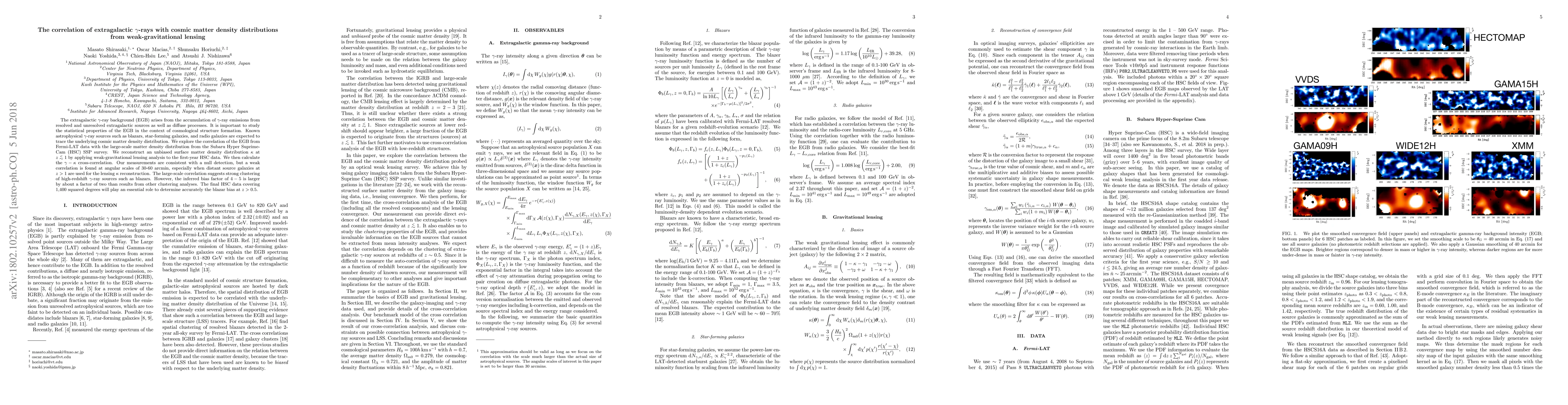 This paper investigates the correlation between the extragalactic gamma-ray background (EGB) from Fermi-LAT data and the large-scale cosmic matter density distribution derived from the Subaru Hyper Suprime-Cam (HSC) survey using weak-gravitational lensing. A weak correlation is detected at angular scales of 30-60 arcmin, suggesting strong clustering of high-redshift gamma-ray sources, particularly blazars.