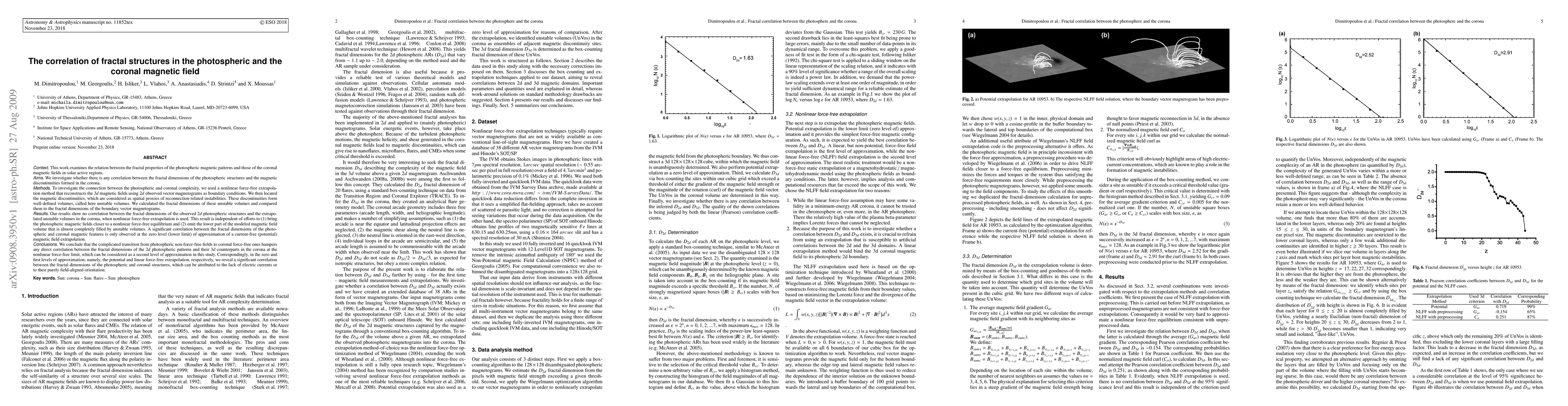 This work examines the relation between the fractal properties of the photospheric magnetic patterns and those of the coronal magnetic fields in solar active regions.Our results show no correlation between the fractal dimensions of the observed 2d photospheric structures and the extrapolated unstable volumes in the corona, when nonlinear force-free extrapolation is used. This result is independent of efforts to (1) bring the photospheric magnetic fields closer to a nonlinear force-free equilibrium and (2) omit the lower part of the modeled magnetic field volume that is almost completely filled by unstable volumes. A significant correlation between the fractal dimensions of the photospheric and coronal magnetic features is only observed at the zero level (lower limit) of approximation of a current-free (potential) magnetic field extrapolation. We conclude that the complicated transition from photospheric non-force-free fields to coronal force-free ones hampers any direct correlation between the fractal dimensions of the 2d photospheric patterns and their 3d counterparts in the corona at the nonlinear force-free limit.
