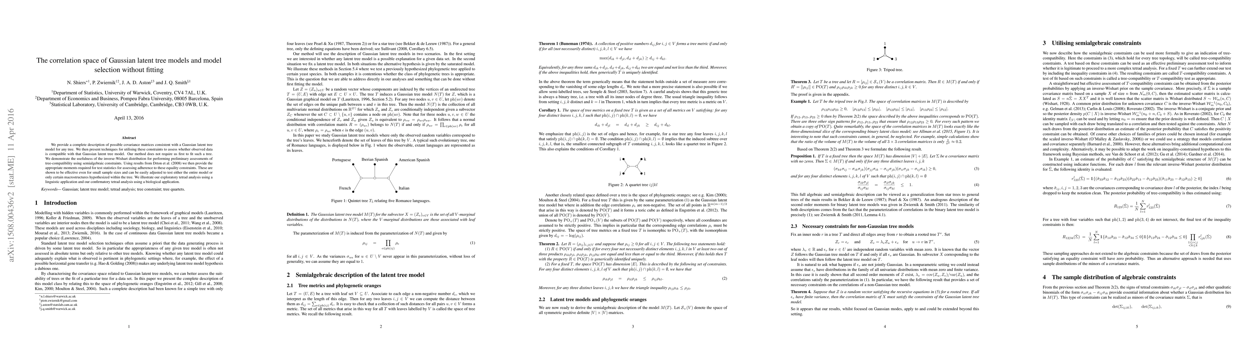 Researchers develop a method to assess compatibility of observed data with Gaussian latent tree models without fitting, using inverse-Wishart distribution and test statistics.