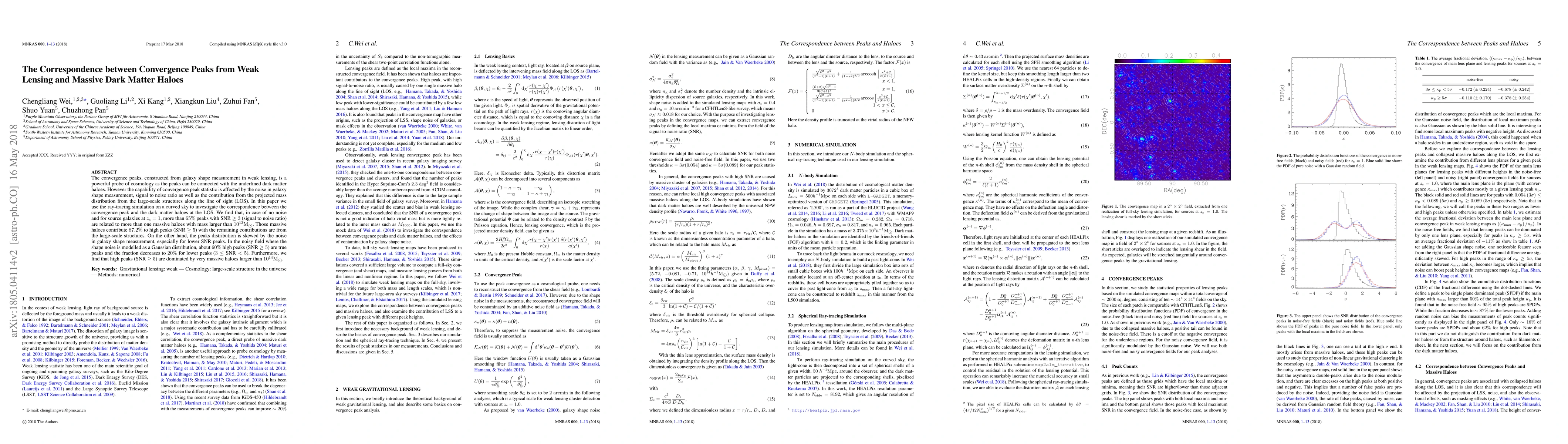 Research finds that more than 65% of strong lensing convergence peaks are linked to multiple massive dark matter haloes, while noise in galaxy shape measurements skews the distribution of peaks, with 20% of lower-SNR peaks being false positives.