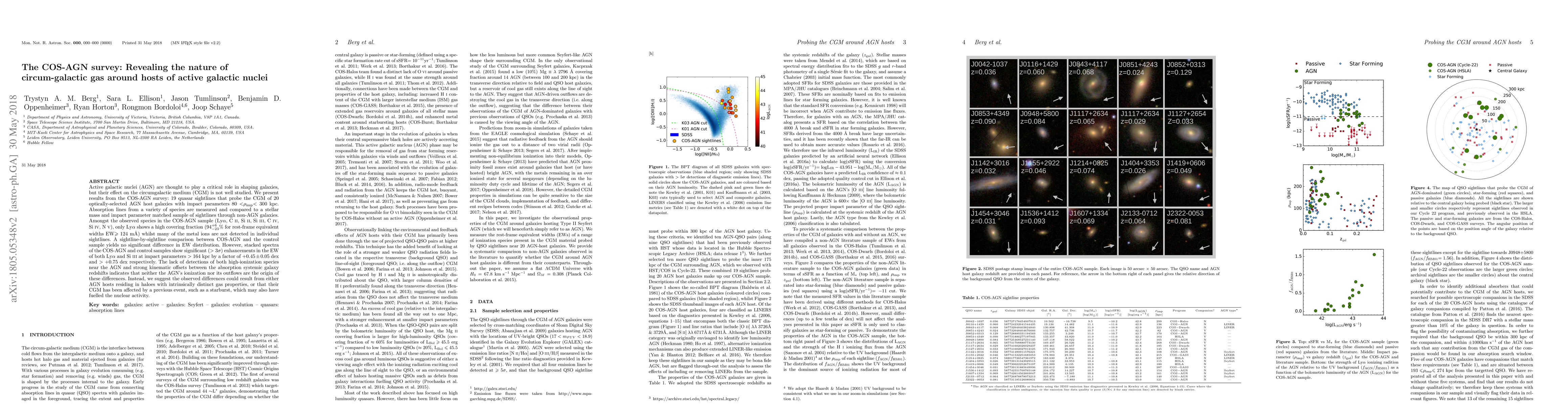 The COS-AGN survey investigates the circumgalactic medium around 20 AGN host galaxies, revealing significant enhancements in Ly$\alpha$ and SiIII absorption lines compared to non-AGN galaxies. The differences suggest AGN hosts may have distinct gas properties or their circumgalactic medium has been influenced by prior events like starbursts.