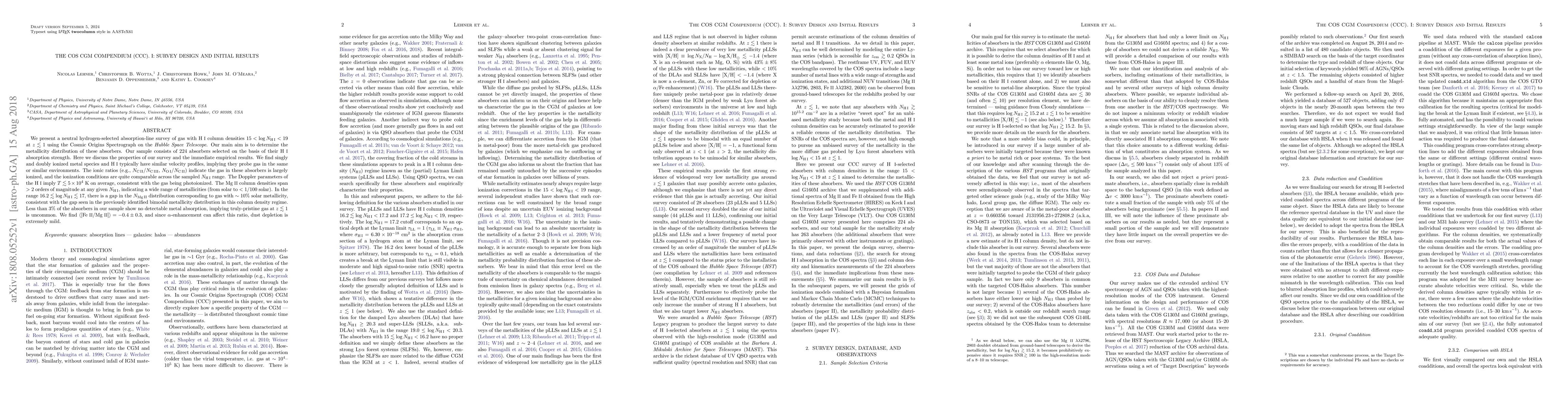 A survey of 224 neutral hydrogen-selected gas absorbers found a wide range of metallicities from solar to less than 1/100 solar, with most gas being photoionized at temperatures below 50,000 K. The study also reveals a gap in the metal absorption distribution corresponding to gas with around 10% solar metallicity.