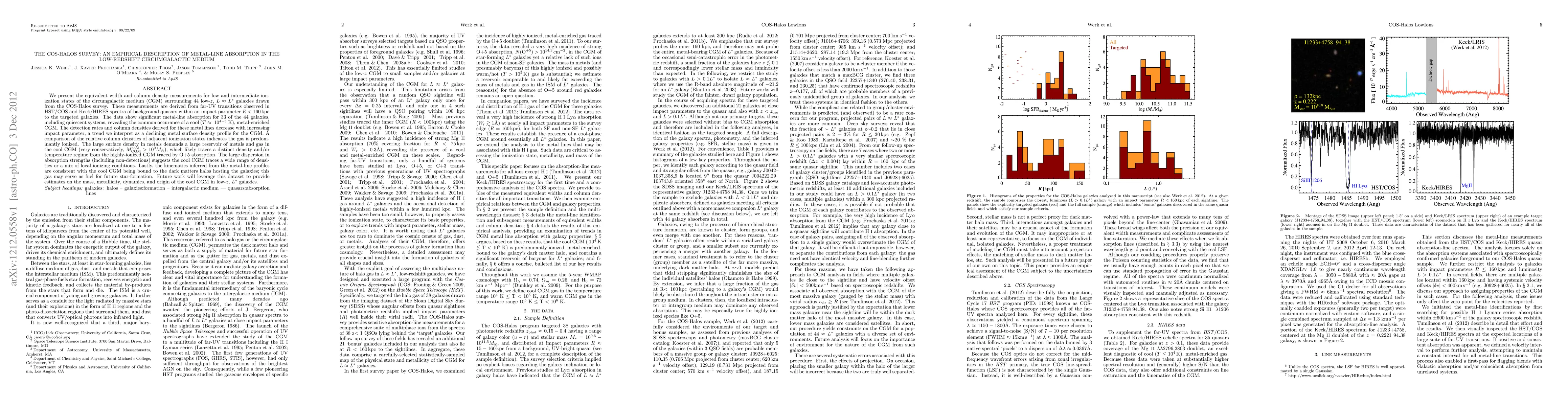 The COS-Halos Survey reveals significant metal-line absorption in the circumgalactic medium (CGM) surrounding 44 low-redshift galaxies, indicating a common presence of cool, metal-enriched CGM. The study suggests a declining metal surface density profile with distance from the galaxies, indicating a large reservoir of metals and gas in the cool CGM.