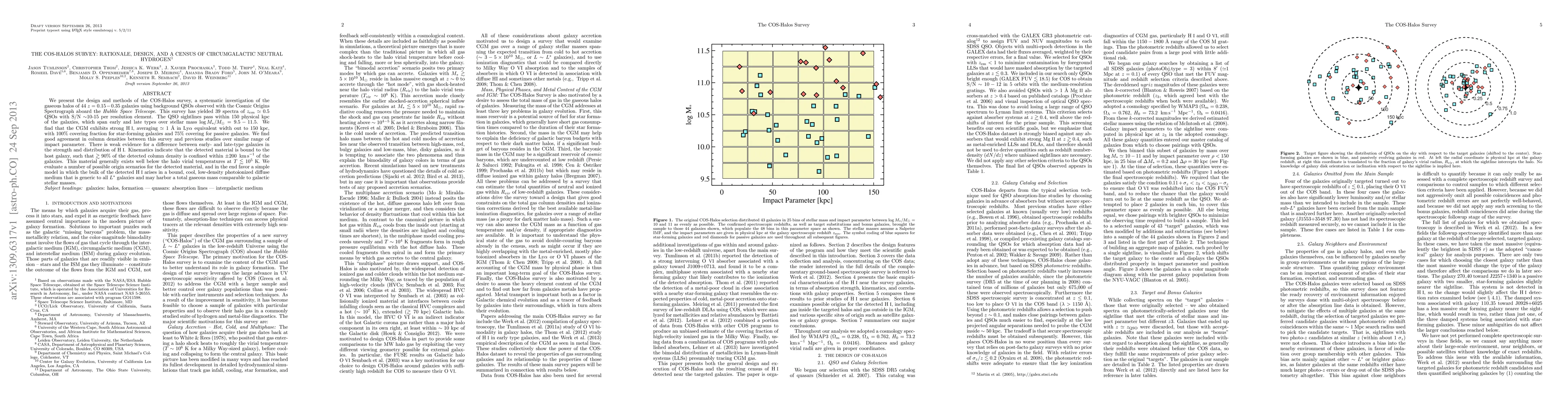 We present the design and methods of the COS-Halos survey, a systematic investigation of the gaseous halos of 44 z = 0.15-0.35 galaxies using background QSOs observed with the Cosmic Origins Spectrograph aboard the Hubble Space Telescope. This survey has yielded 39 spectra of z_em ~ 0.5 QSOs with S/N ~ 10-15 per resolution element. The QSO sightlines pass within 150 physical kpc of the galaxies, which span early and late types over stellar mass log M* / Msun= 9.5 - 11.5. We find that the CGM exhibits strong HI, averaging 1 Ang in Lya equivalent width out to 150 kpc, with 100% covering fraction for star-forming galaxies and 75% covering for passive galaxies. We find good agreement in column densities between this survey and previous studies over similar range of impact parameter. There is weak evidence for a difference between early- and late-type galaxies in the strength and distribution of HI. Kinematics indicate that the detected material is bound to the host galaxy, such that >~90% of the detected column density is confined within +/-200 km s^-1 of the galaxies. This material generally exists well below the halo virial temperatures at T<~ 10^5 K. We evaluate a number of possible origin scenarios for the detected material, and in the end favor a simple model in which the bulk of the detected HI arises in a bound, cool, low-density photoionized diffuse medium that is generic to all L* galaxies and may harbor a total gaseous mass comparable to galactic stellar masses.