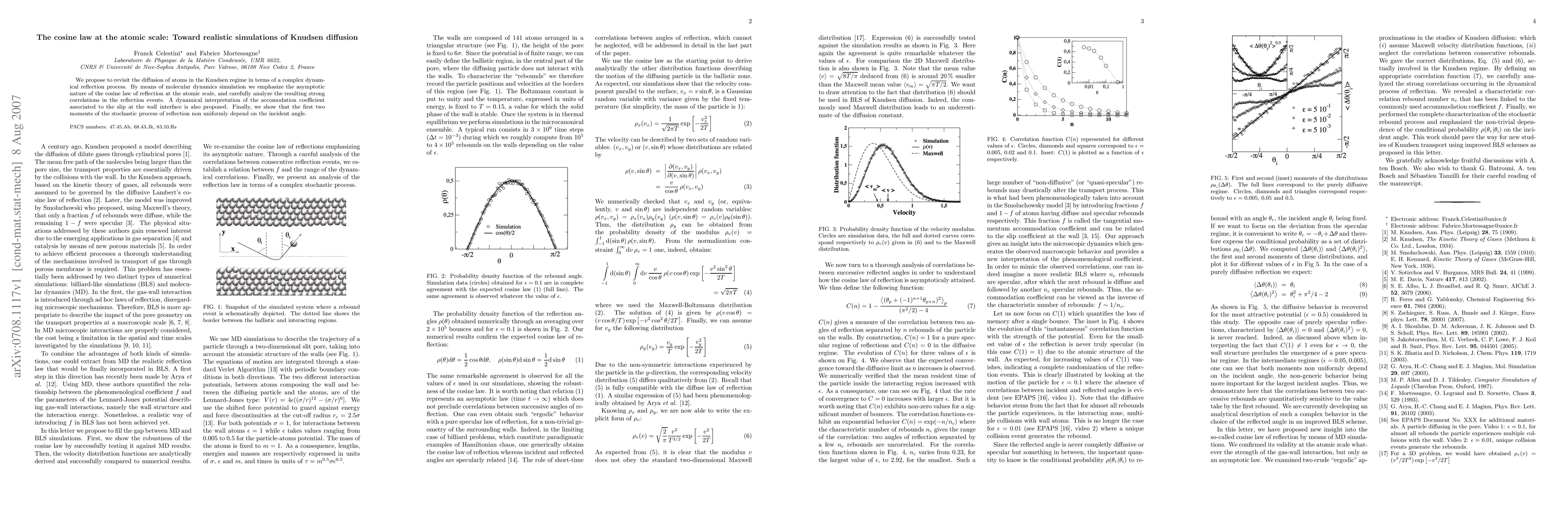We propose to revisit the diffusion of atoms in the Knudsen regime in terms of a complex dynamical reflection process. By means of molecular dynamics simulation we emphasize the asymptotic nature of the cosine law of reflection at the atomic scale, and carefully analyze the resulting strong correlations in the reflection events. A dynamical interpretation of the accomodation coefficient associated to the slip at the wall interface is also proposed. Finally, we show that the first two moments of the stochastic process of reflection non uniformly depend on the incident angle.