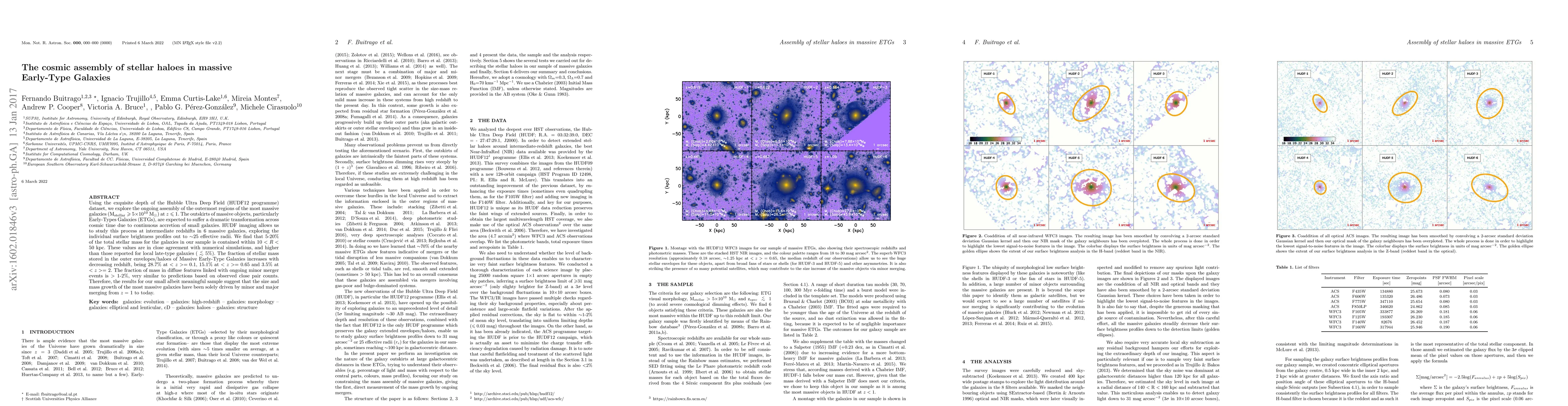 This study, using Hubble Ultra Deep Field data, examines the growth of massive Early-Type Galaxies (ETGs) from z=1 to the present. It finds that 5-20% of their stellar mass resides in outer regions, increasing over time and consistent with simulations. The growth is attributed to minor and major mergers, with 1-2% of mass in diffuse features linked to these events.
