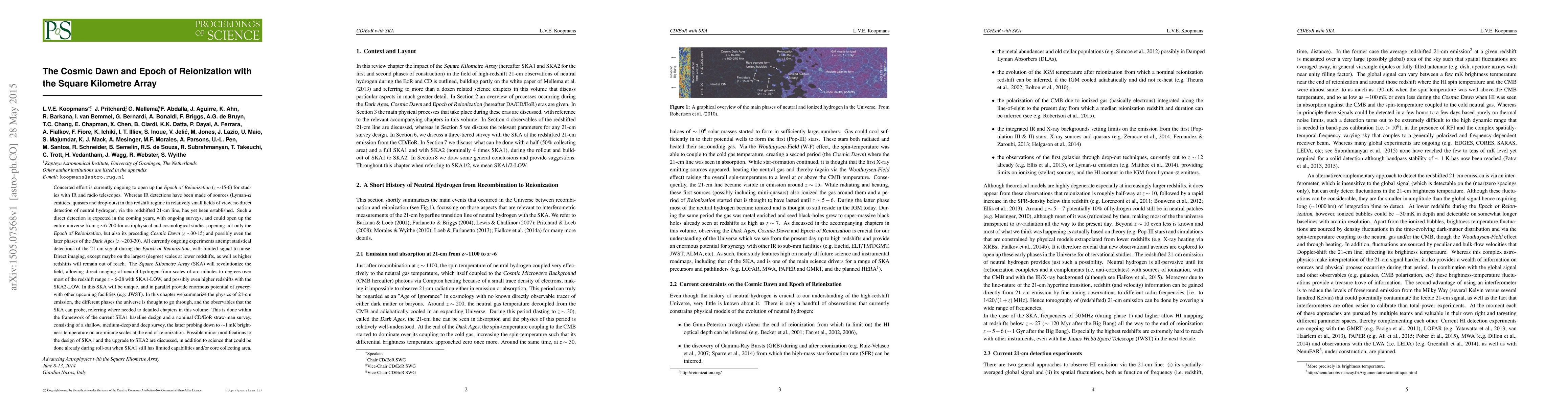 Concerted effort is currently ongoing to open up the Epoch of Reionization (EoR) ($z\sim$15-6) for studies with IR and radio telescopes. Whereas IR detections have been made of sources (Lyman-$\alpha$ emitters, quasars and drop-outs) in this redshift regime in relatively small fields of view, no direct detection of neutral hydrogen, via the redshifted 21-cm line, has yet been established. Such a direct detection is expected in the coming years, with ongoing surveys, and could open up the entire universe from $z\sim$6-200 for astrophysical and cosmological studies, opening not only the EoR, but also its preceding Cosmic Dawn ($z\sim$30-15) and possibly even the later phases of the Dark Ages ($z\sim$200-30). All currently ongoing experiments attempt statistical detections of the 21-cm signal during the EoR, with limited signal-to-noise. Direct imaging, except maybe on the largest (degree) scales at lower redshifts, as well as higher redshifts will remain out of reach. The Square Kilometre Array(SKA) will revolutionize the field, allowing direct imaging of neutral hydrogen from scales of arc-minutes to degrees over most of the redshift range $z\sim$6-28 with SKA1-LOW, and possibly even higher redshifts with the SKA2-LOW. In this SKA will be unique, and in parallel provide enormous potential of synergy with other upcoming facilities (e.g. JWST). In this chapter we summarize the physics of 21-cm emission, the different phases the universe is thought to go through, and the observables that the SKA can probe, referring where needed to detailed chapters in this volume (Abridged).